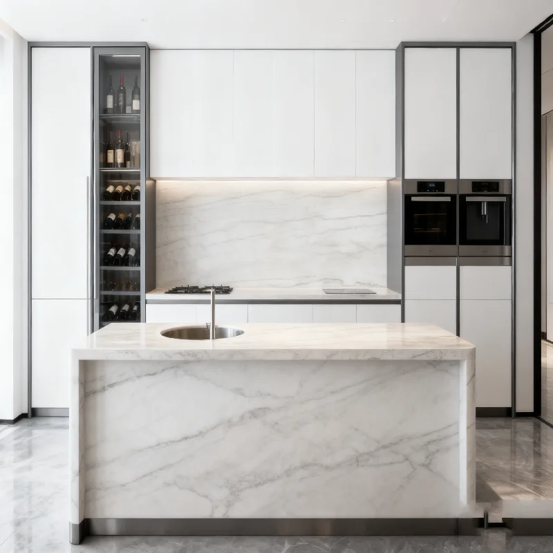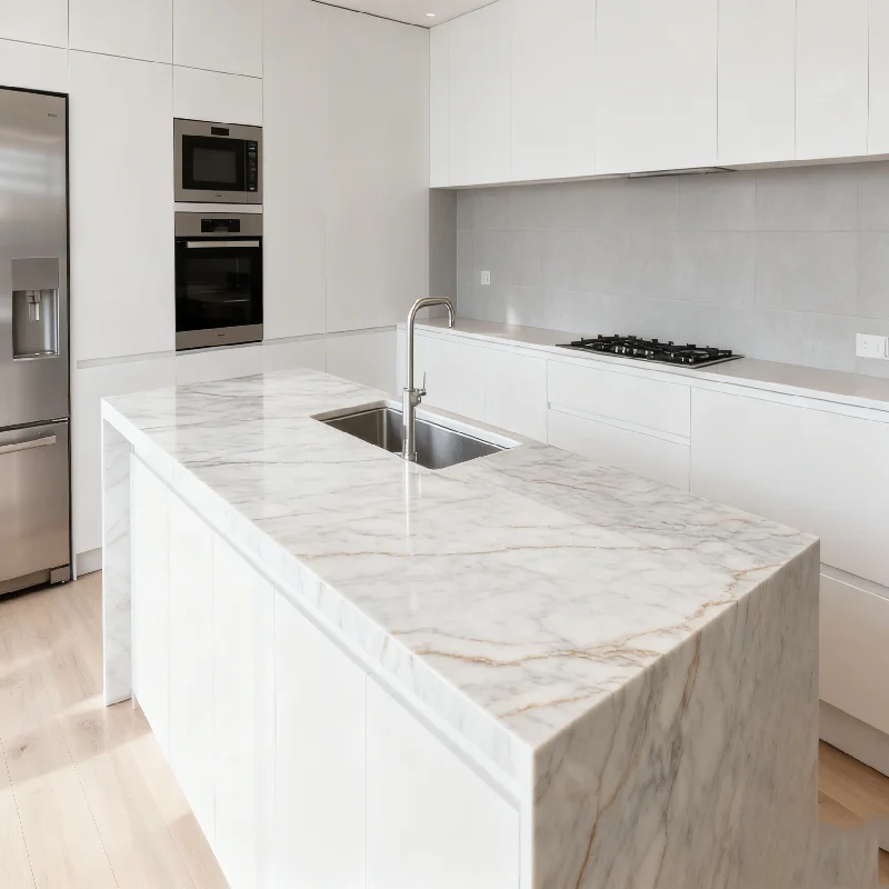 Piani di lavabo e piani da tavolo in marmo bianco moderno e lussuoso, resistenti all'acqua, in pietra naturale per hotel, cucine e isole da cucina in marmo