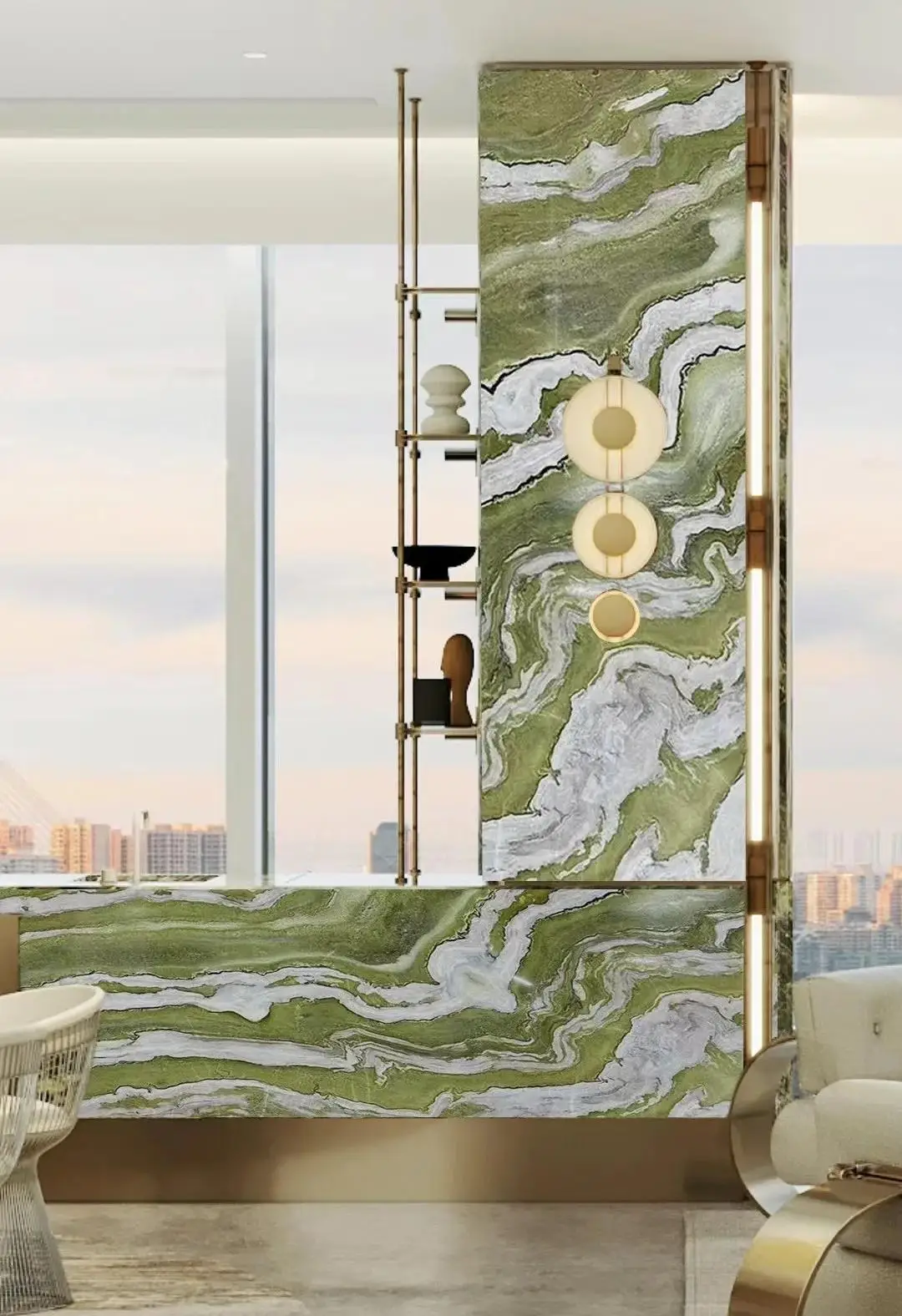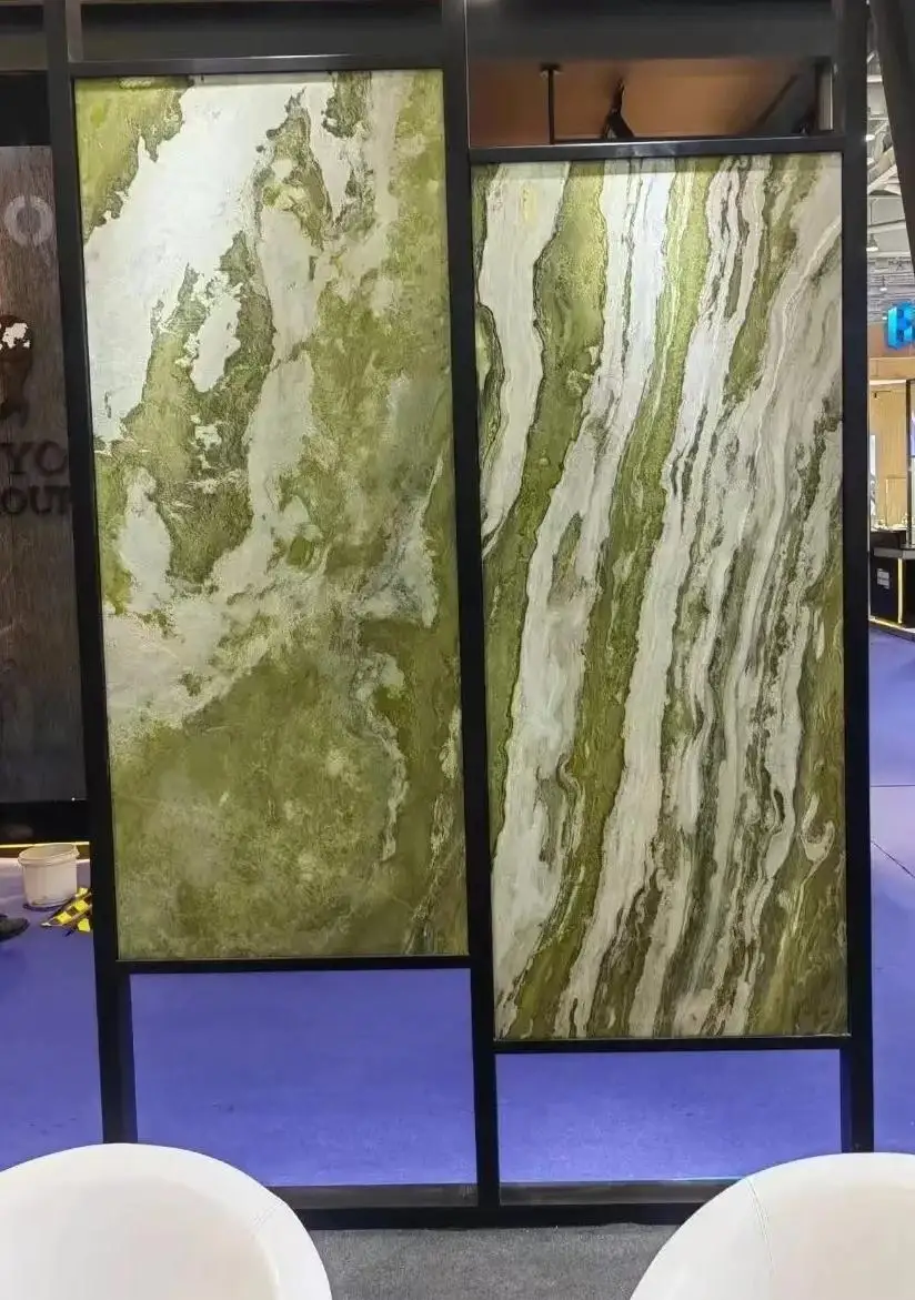 Lastra di marmo verde di lusso moderna e di alta qualità con bellissimo motivo, per rivestimento murale interno di hotel e ville, retroilluminata e trasparente