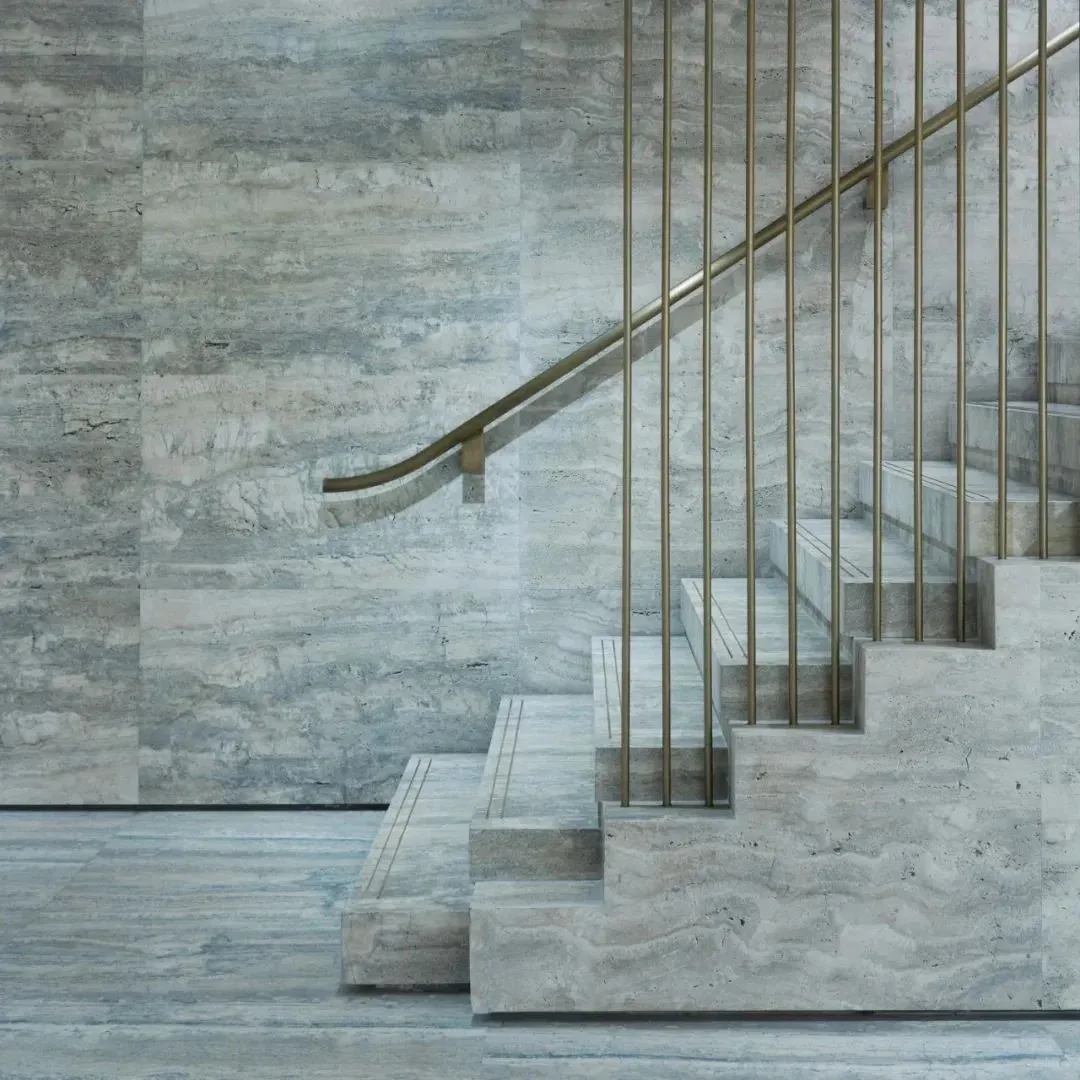 Piastrelle moderne in travertino blu naturale e calcare per interni, adatte a hotel, bagni, lavandini, pareti, pavimenti e scale; piastrelle in travertino/marmo