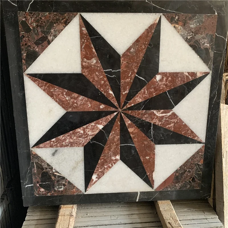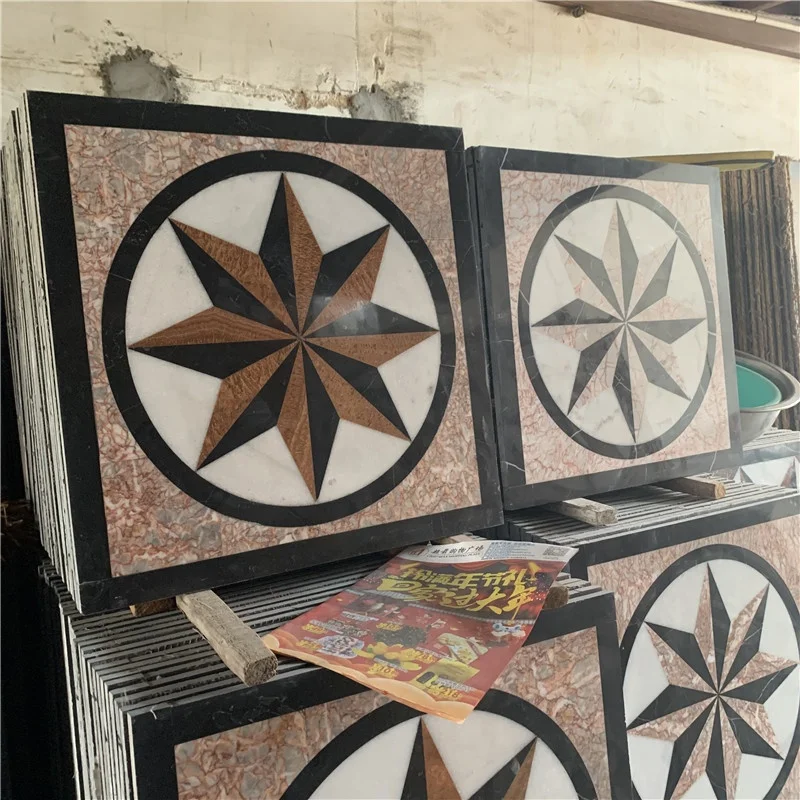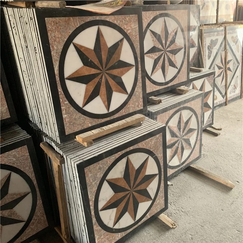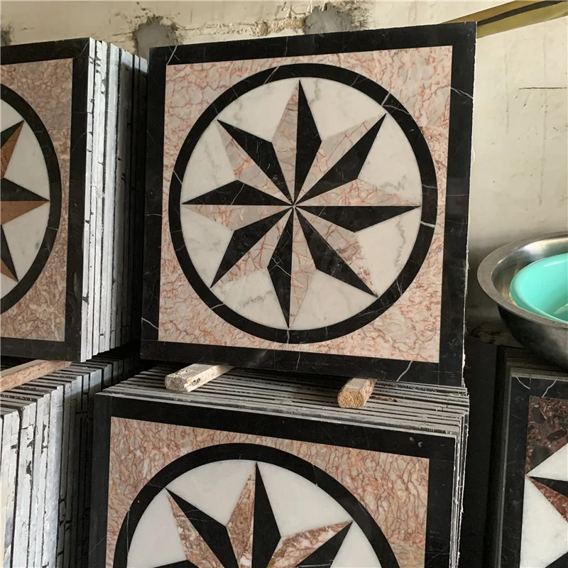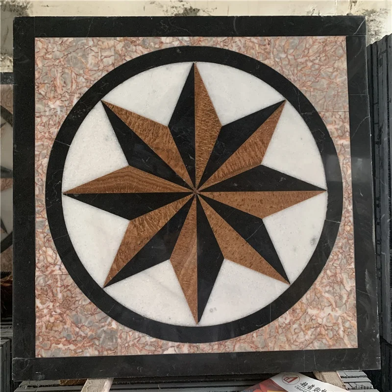Piastrelle da pavimento in marmo moderne lucidate, impermeabili, quadrate, con motivo a medaglione tagliato a getto d'acqua, con garanzia di 1 anno