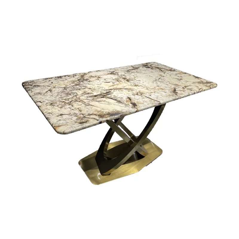 שולחן אוכל עגול עם גוף מרכזי מאבן מרציפן ורגליים מש stainless steel
