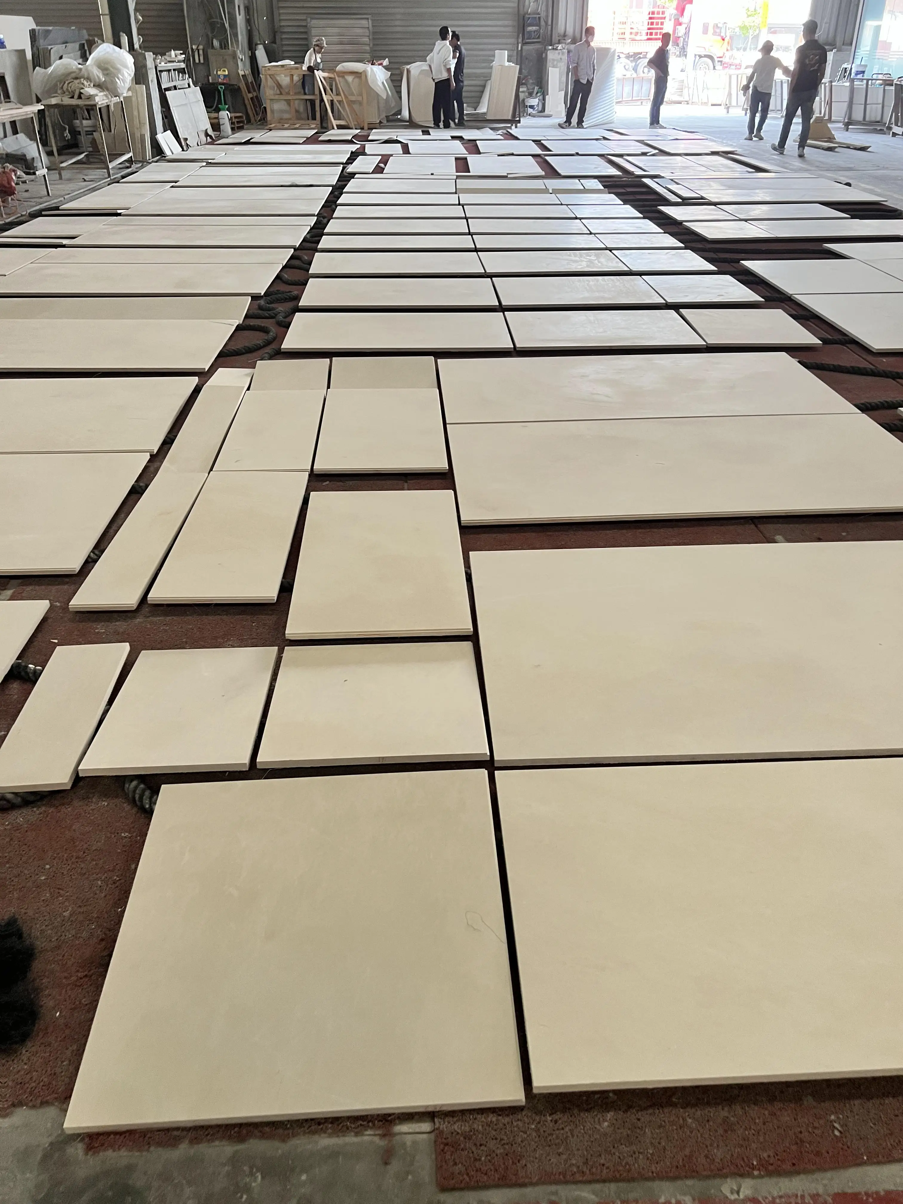 שיש אבן גיר לבן מודרני לפרויקטים חיצוניים לקירות, וילות, כנסיות, בתי מלון, מקדשים ובניינים וילתיים עם מסגרת משופעת