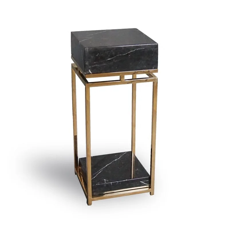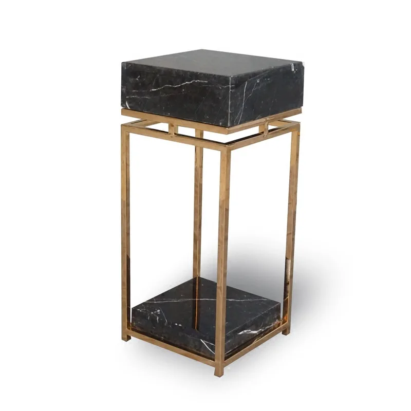 דגם נורדי לבית, סלון, מדפי תצוגה טבעיים יוקרתיים ממתכת לפרחים, מנחה לשירות, זהב ואבן שיש, מספר קומות