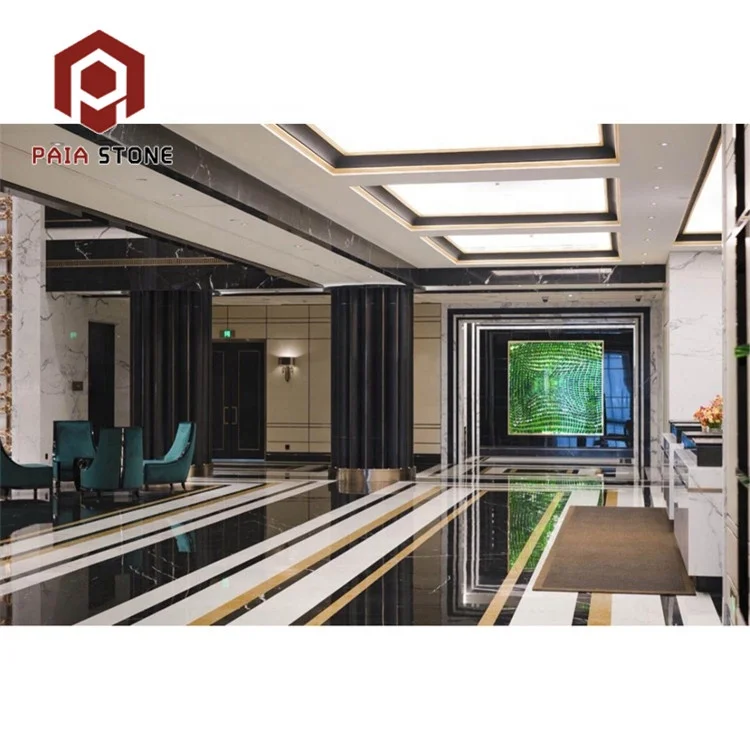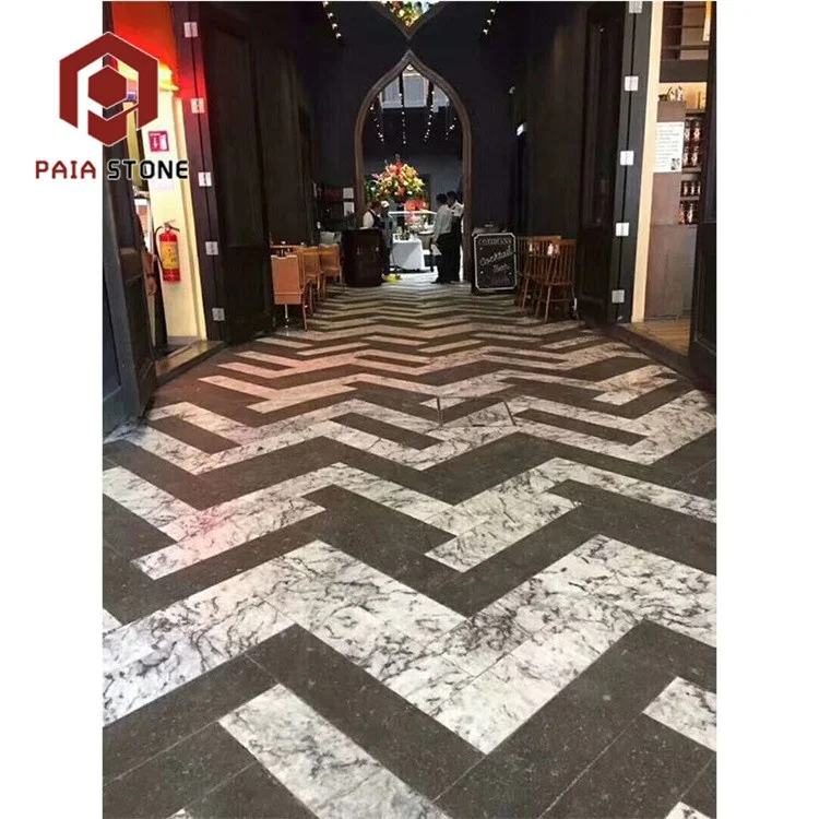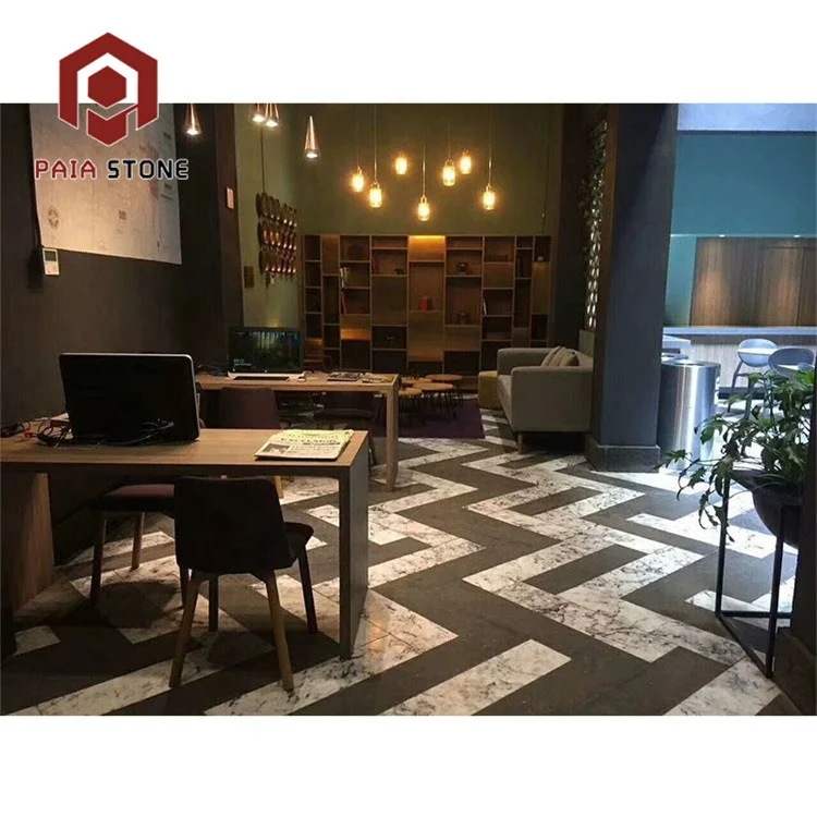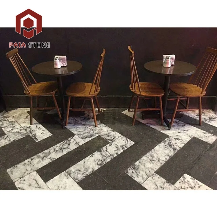 ブラック・ホワイトタイル(イタリア産混合ブラック大理石フロアタイル)、インテリアデザイン用