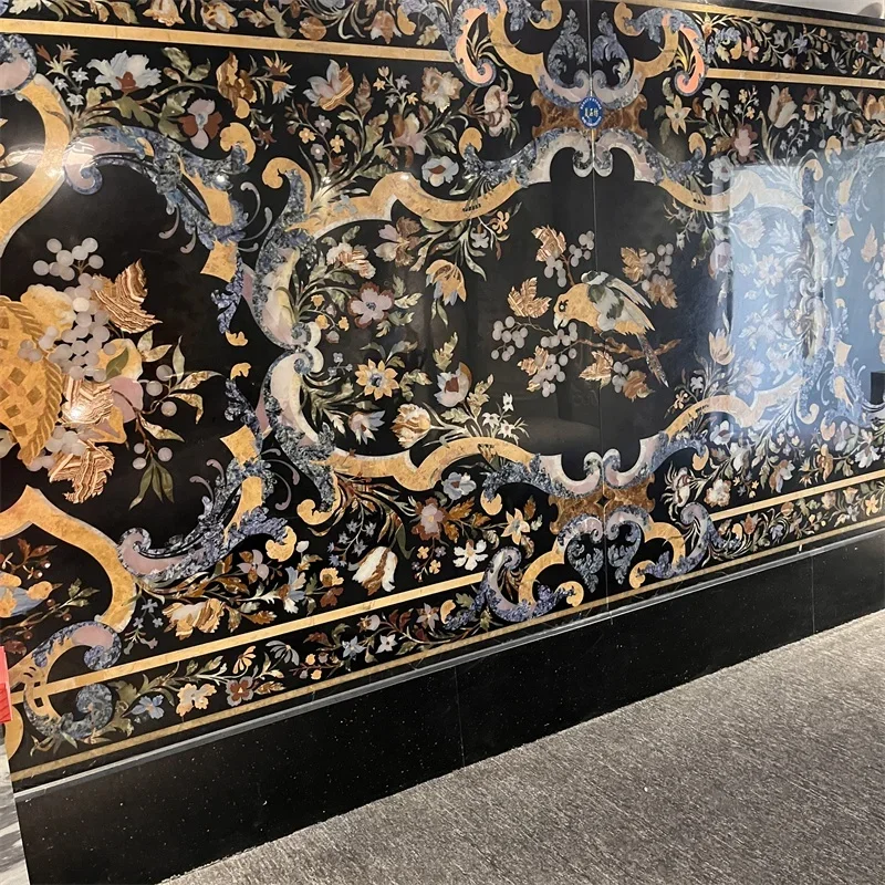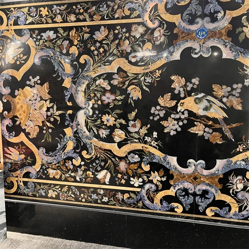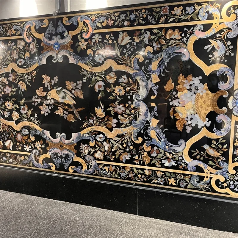 ラグジュアリーなフローラルパターンウォータージェットドロマイト大理石メダリオン:耐久性に優れたモダンなホテル床タイル、グラフィックデザインインレイ付き