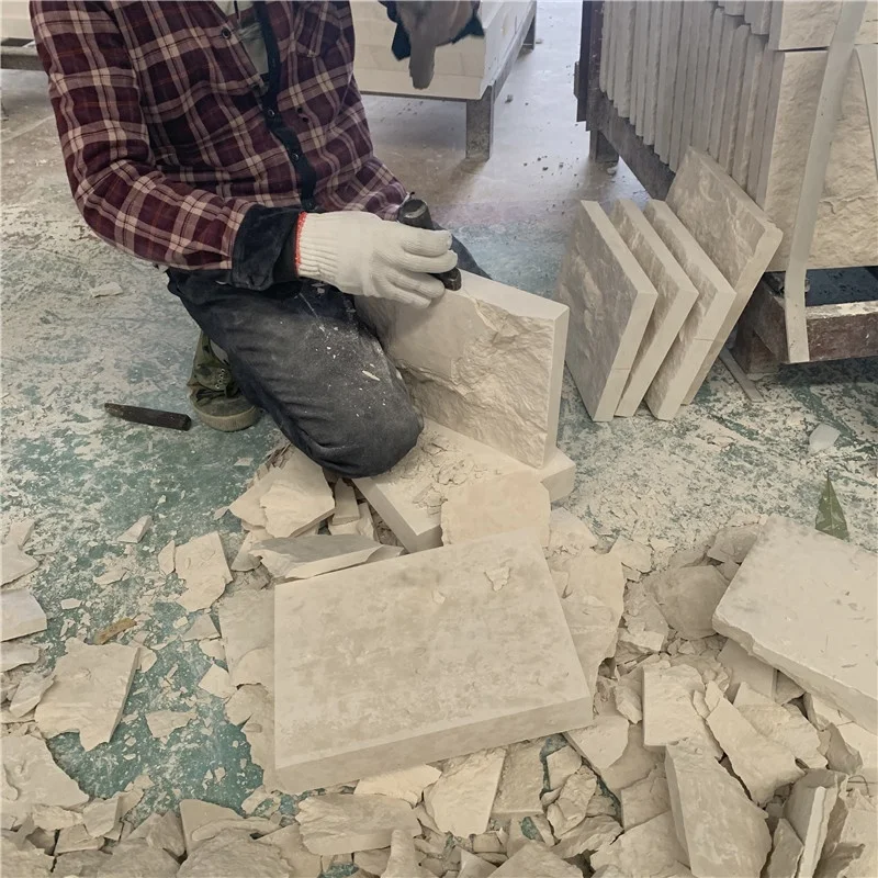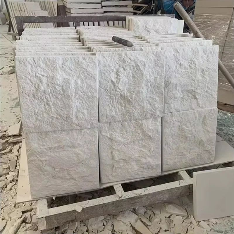 これらの石灰岩タイルの最大の特徴の一つは、その3D効果です。平面的なタイルとは異なり、割面デザイン(スプリットフェイス)は立体的な外観を提供し、光と影との調和が非常に美しくなります。これにより、壁面が単調になることがなく、視線を引きつける質感と視覚的なインパクトを持つことができます。アクセントウォールにも部屋全体の貼り付けにも最適で、スタイリッシュかつ洗練された雰囲気を簡単に演出できます。