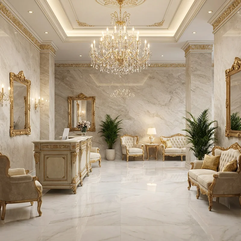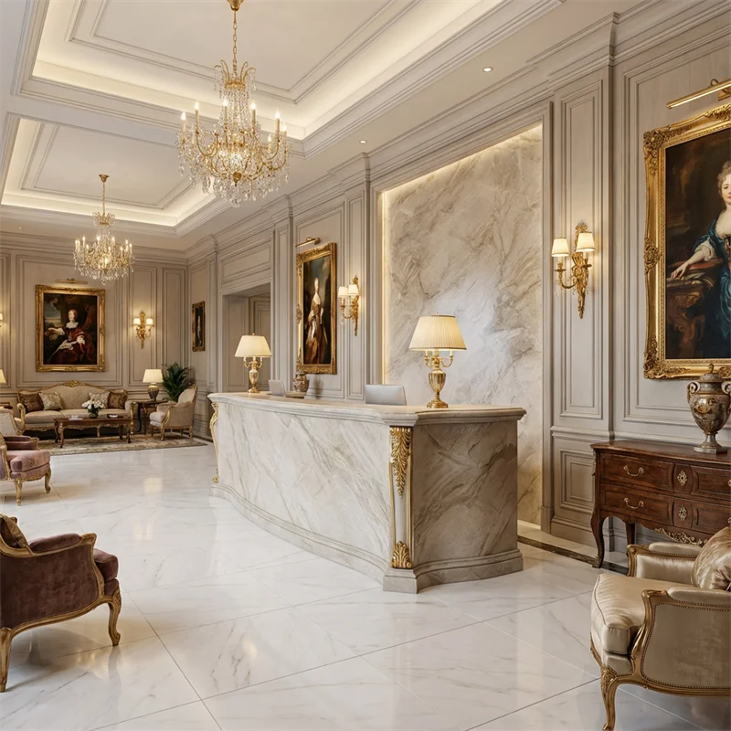 Კედლის გარსი, იატაკი, საკვების დასადები ზედაპირი, ბარის ზედა ნაწილი, რეცეფციის მაგიდა |