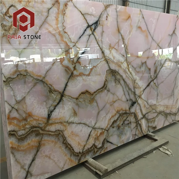 Декоративті тас: қызғылт оникс тасы мен мәрмәр — қонақ үй жобасы үшін