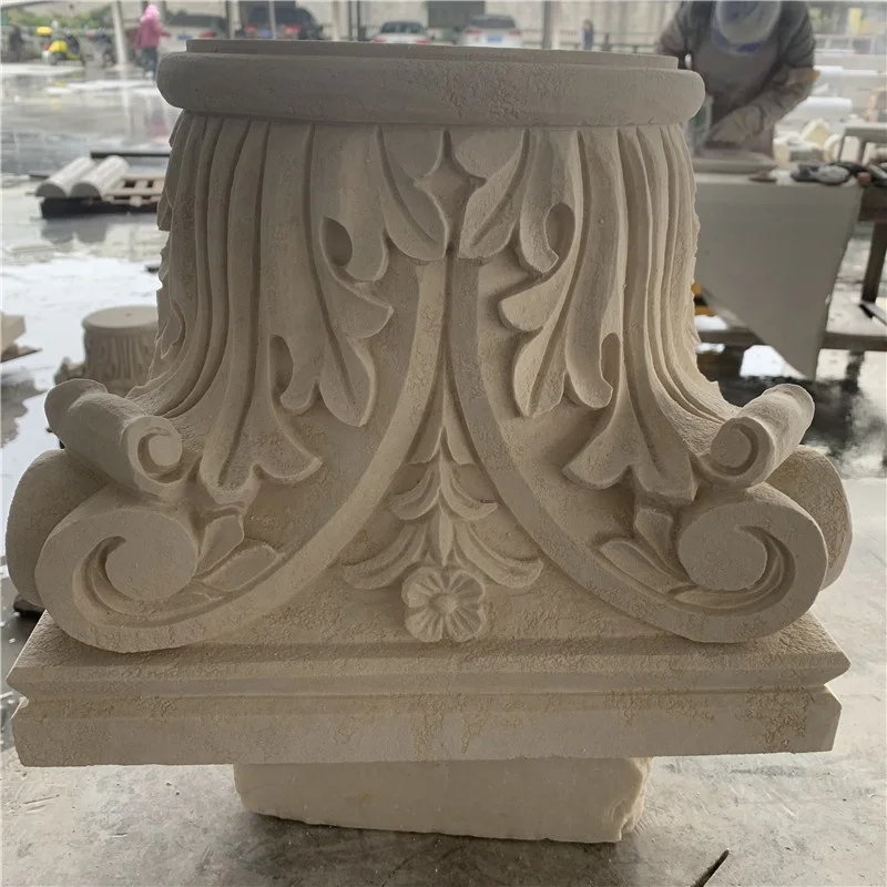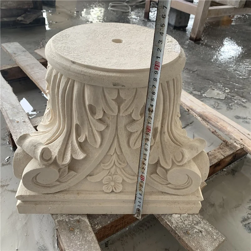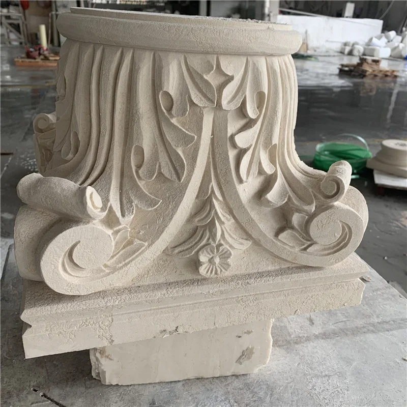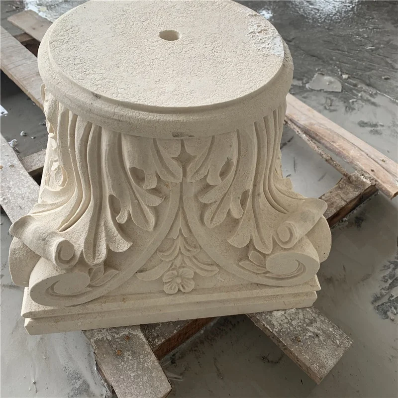 ប៉ីលារទម្រង់តុបតែងពណ៌បៃតងខ្ចីដែលឆ្លាក់ពីថ្មដីឥដ្ឋ
