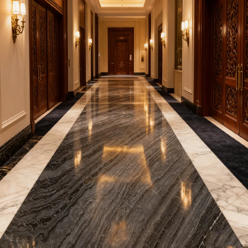 ត្រូវបានរចនាឡើងជាពិសេសសម្រាប់អាគារផ្ទះល្វែង វីឡា និងតំបន់ខាងក្នុងផ្សេងទៀត ការ៉ូឡាដីទាំងនេះបង្កើតរូបរាងដ៏អធិសុខ និងអធិភាពដែលសមនឹងគ្រប់រចនាប័ទ្ម។ គំរូឈើបុរាណផ្តល់នូវភាពទាក់ទាញបែបបុរាណ ធ្វើឱ្យឥដ្ឋការ៉ូរបស់អ្នកមើលទៅស្អាត និងធម្មជាតិ ដោយមិនចាំបាច់ថែរក្សាដូចជាឈើពិតប្រាកដ។ ក្នុងពេលតែមួយ សម្ភារៈម៉ាប់លែរផ្តល់នូវផ្ទៃរលោង និងភាពភ្លឺថ្លាដែលបំភ្លឺអធិសុខ ដោយបង្កើនបរិយាកាសសរុបរបស់ផ្ទះអ្នក។