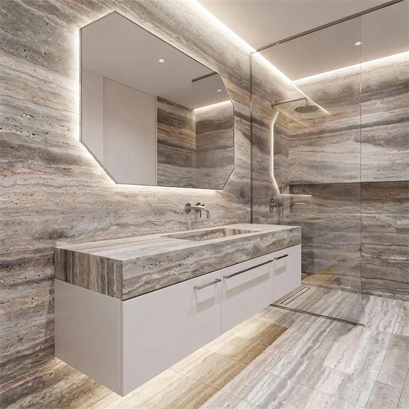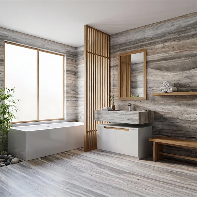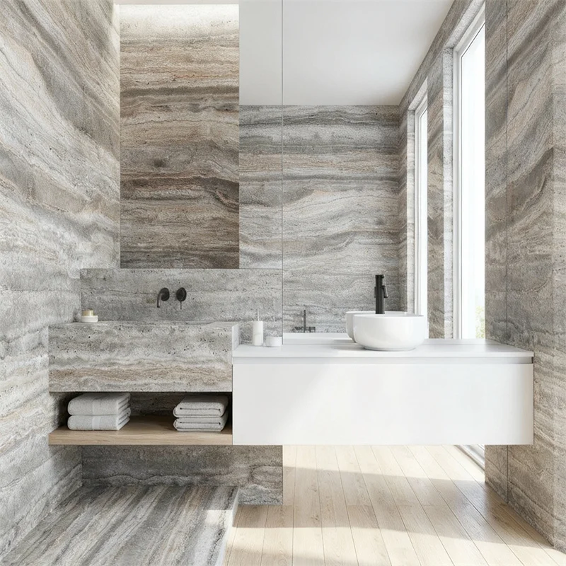 ក្បូនក្រាលបន្ទប់ទឹក ក្រាលឥដ្ឋ និងផ្ទៃតុគ្រឿងអលង្ការ Paia Stone PIM Silver Travertine គឺជាជម្រើសល្អសម្រាប់អ្នកណាម្នាក់ដែលចង់ធ្វើឱ្យកន្លែងរបស់ពួកគេកាន់តែប្រសើរឡើងដោយរួមបញ្ចូលគ្នានូវភាពប្រណីត សោភ័ណ្ឌធម្មជាតិ និងស្ថេរភាពយូរអង្វែង។ ជ្រើសរើស Paia សម្រាប់គុណភាព ភាពស្រស់ស្អាត និងការរចនាដ៏ឆ្លាតវៃក្នុងការកែតម្រូវផ្ទះ ឬសាងសង់ថ្មី