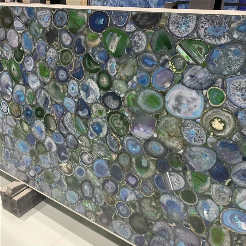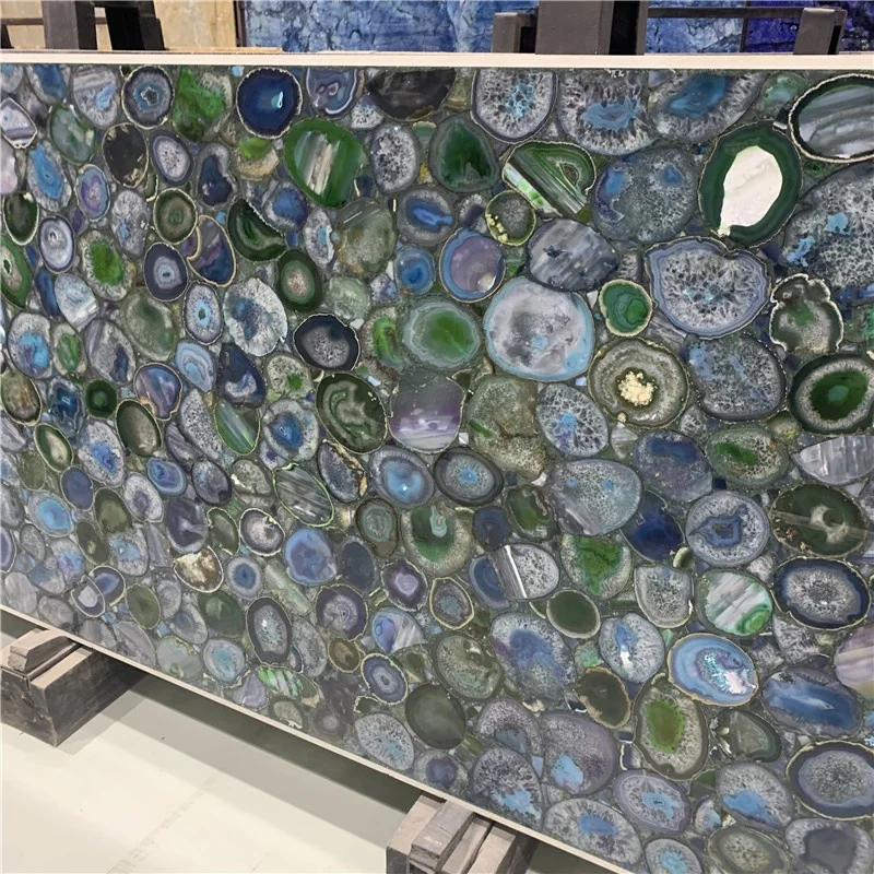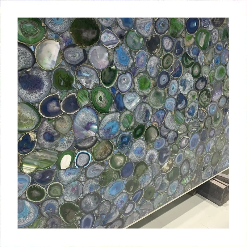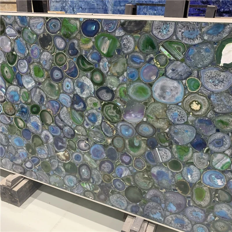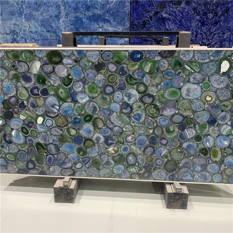 공장 직송 반투명 블루·그린 대리석 아게이트 석재 타일/슬래브 – 실내 장식용 준보석 소재
