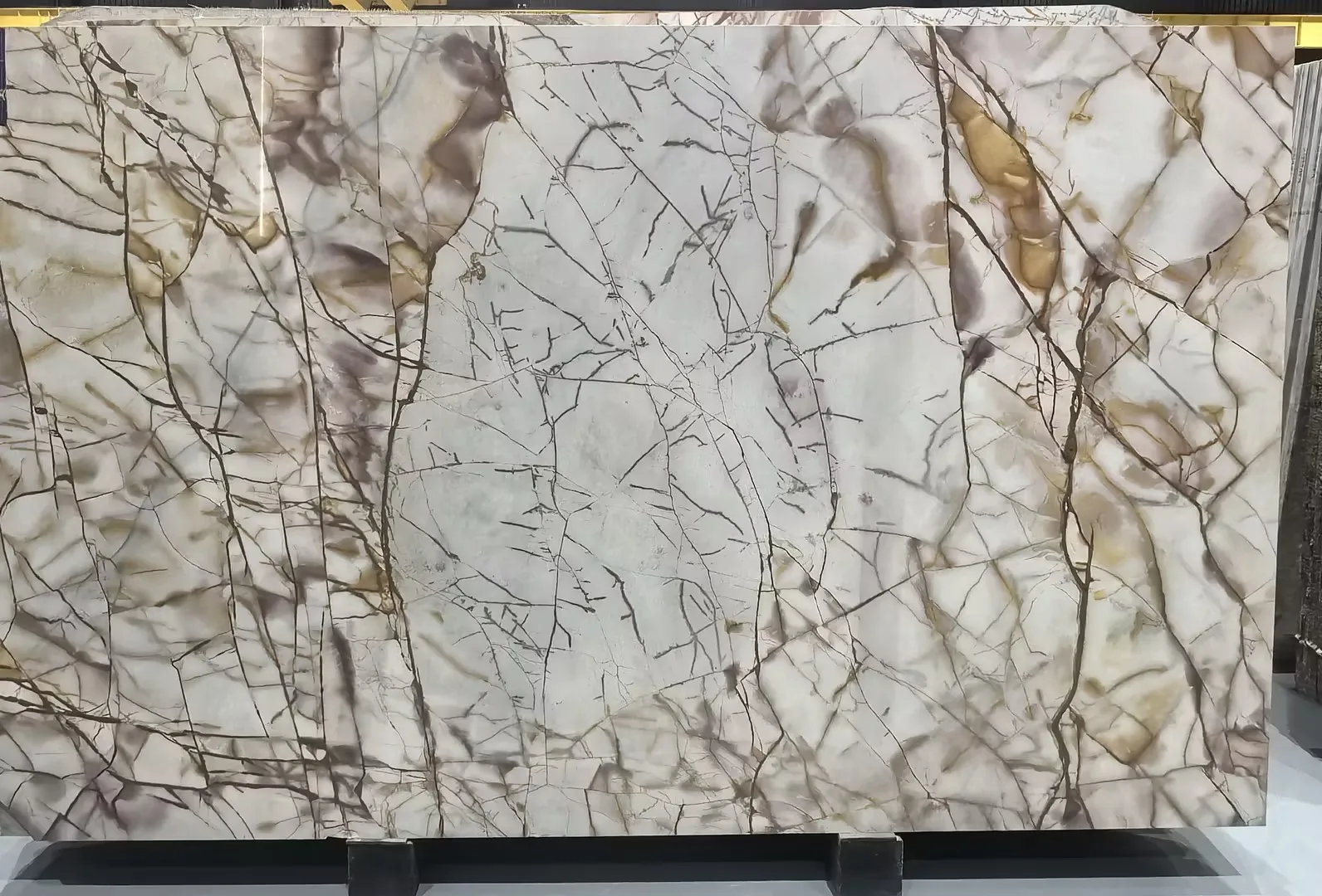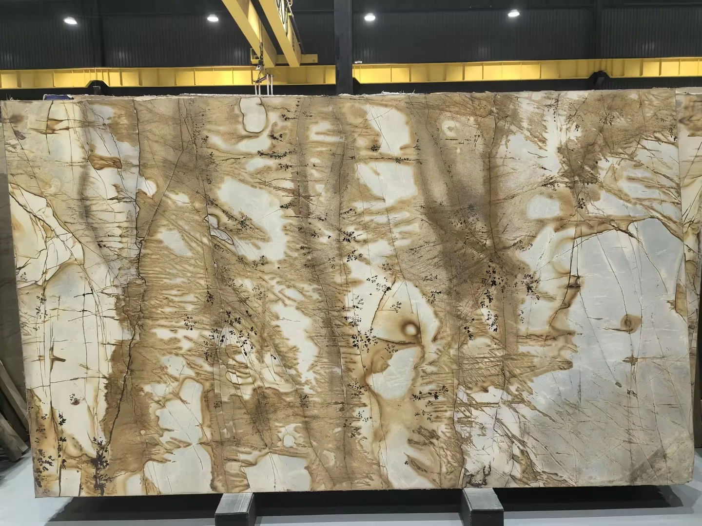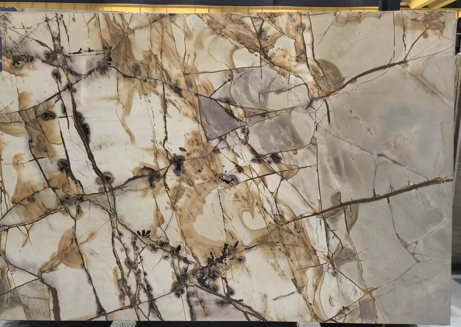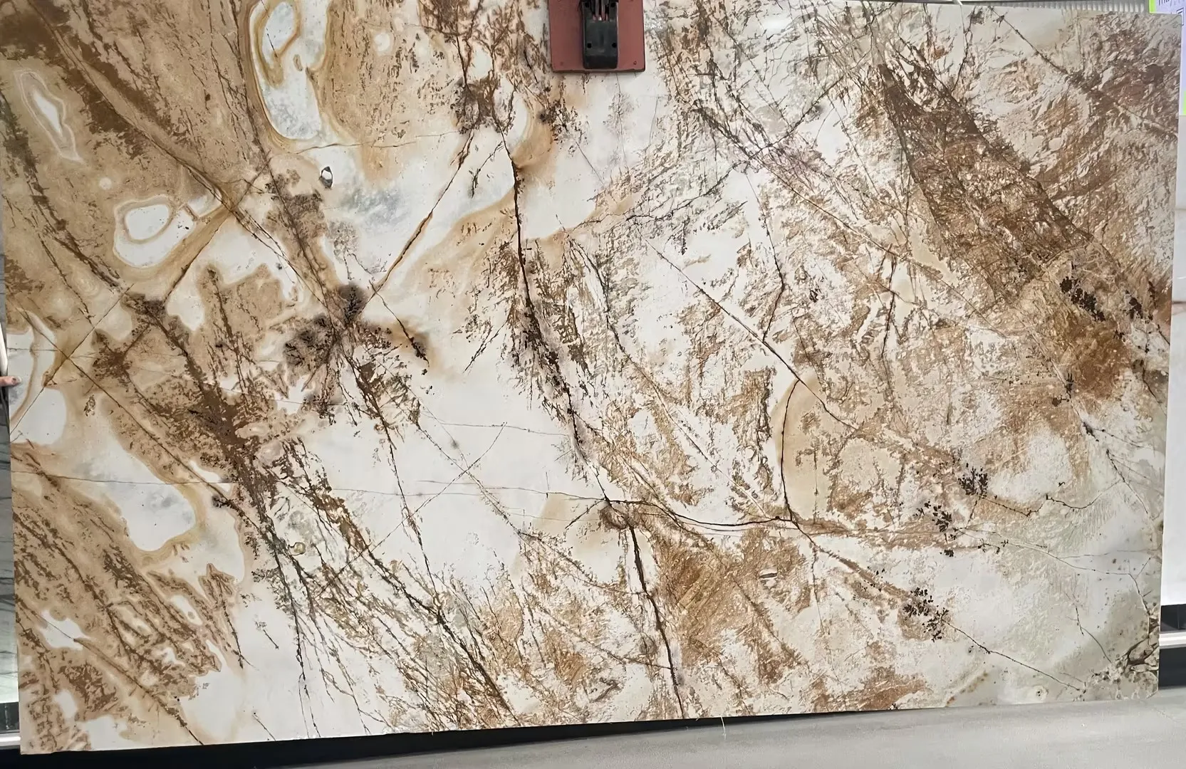 Люкс табигый алтын кварцити полированный Рома Империале чоң плита, кварцит плиталары, современный кухня жана вилла үчүн мрамордун башка бөлмөсүндөгү уюштуруу үстүнөн