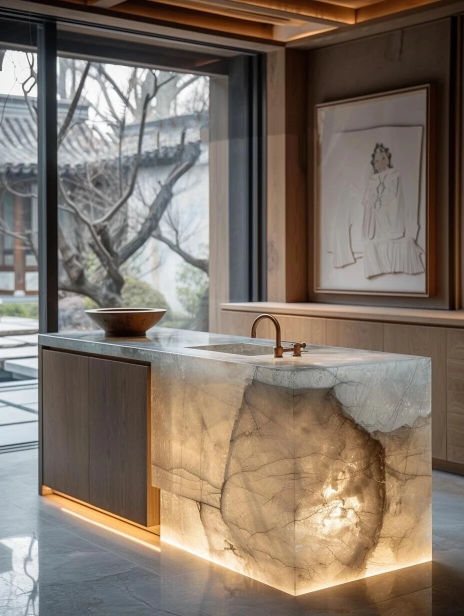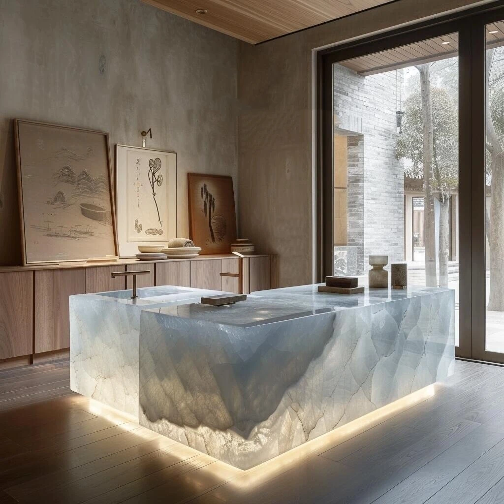 Жогорку бөлүгү: мрамор/гранит/жасалма таш/трассвертин; Таяныч: мрамор/гранит/акаа таш/нержелейки металл Материалды кереги боюнча өзгөртүүгө болот |