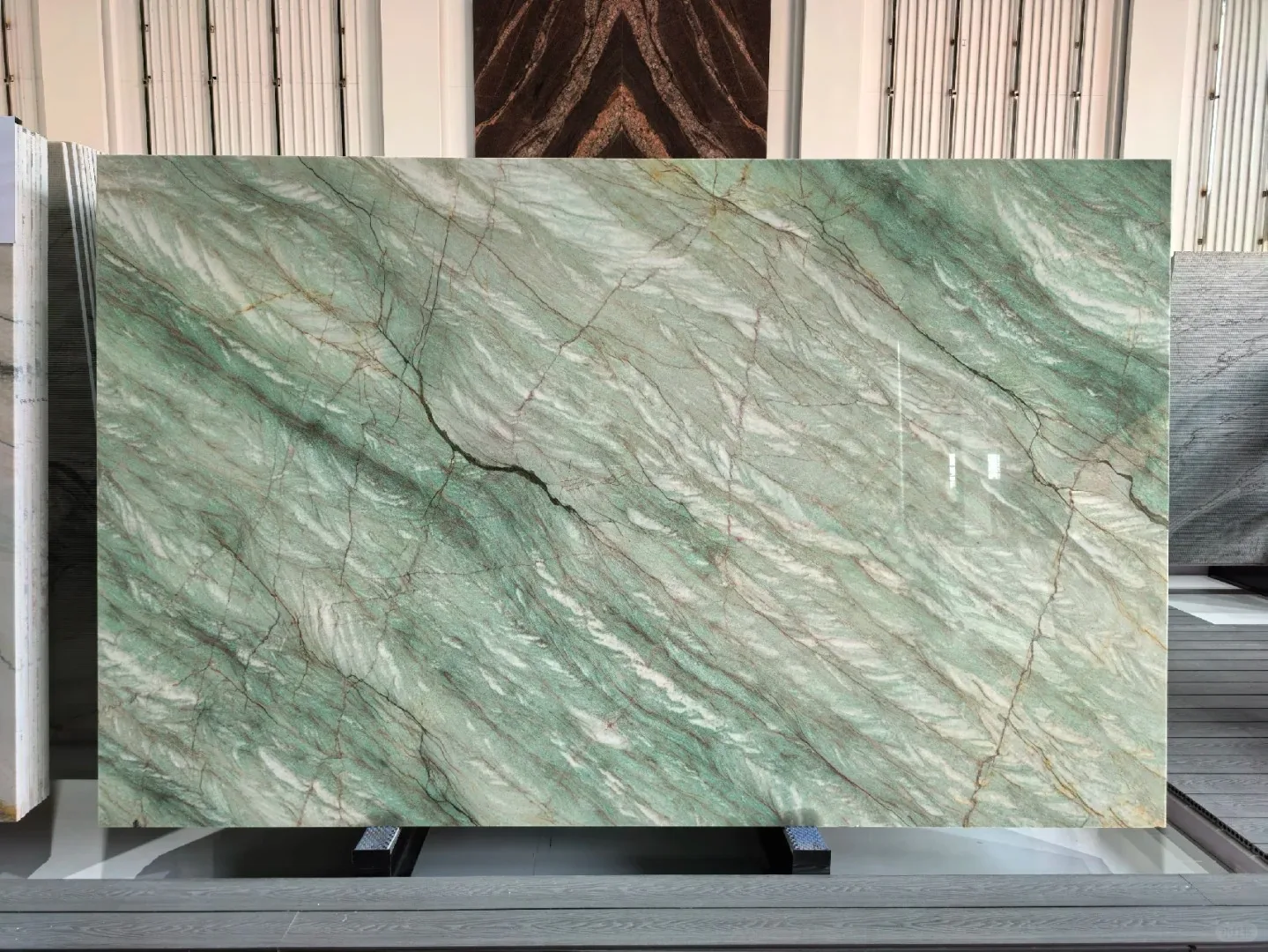 Модерн люкс полированный жашыл кварцит плита, ичке интерьер стенасынын арткы жарык фону үчүн ичке бөлмөлөрдө, отелдерде, виллада, Гая кварцити дизайн