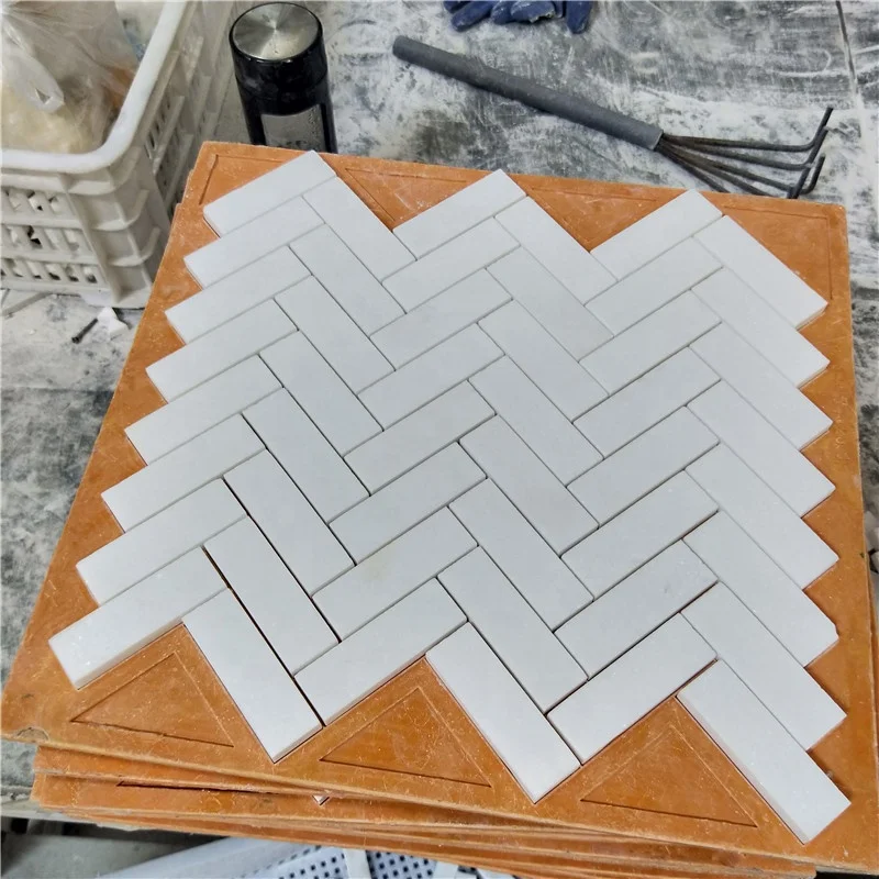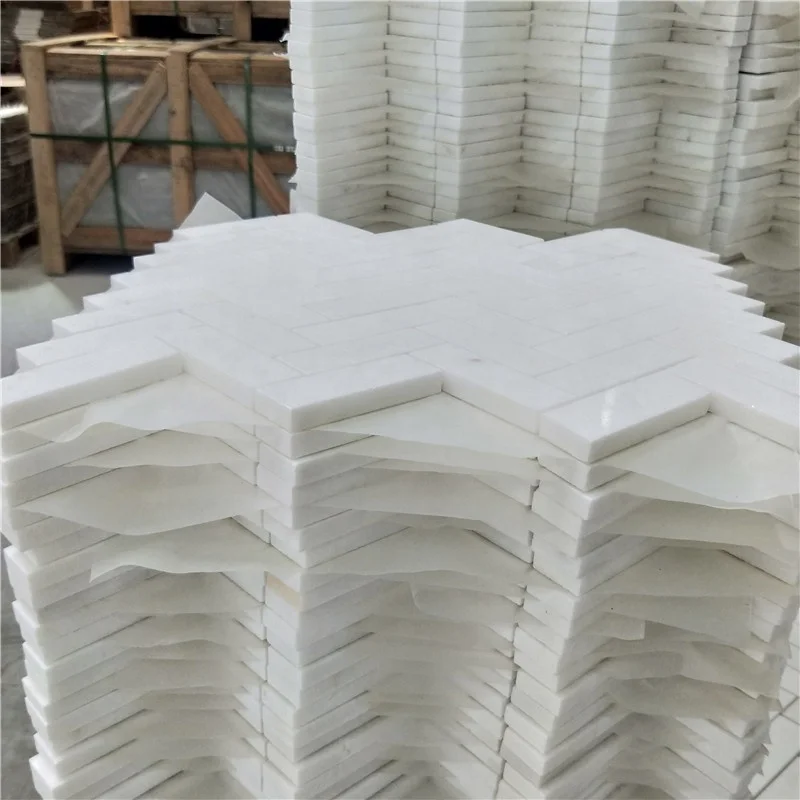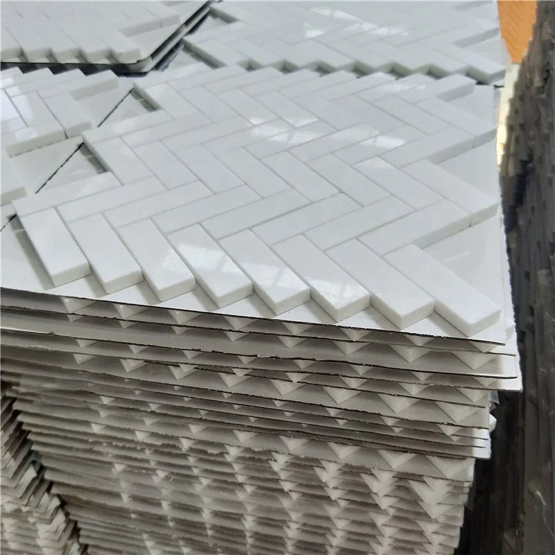 Fabrica Suppeditat Bonae Qualitatis Herringboni Cristalli Albi Marmorei Lapidei Musivi Tessellam Pro Sala Concionandi, Cubiculo, Laiculi Pariete Decoratione