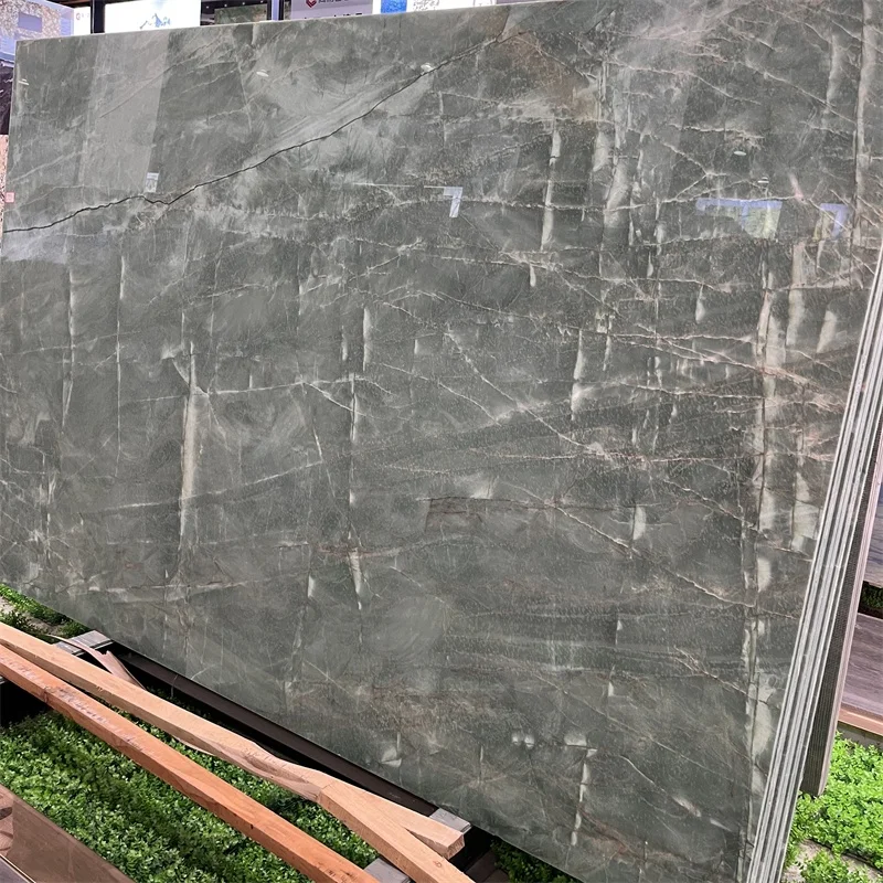 Lapides quartzitae viridis smaragdinae luxuriosi pro parietibus ornandis, summam qualitatem habentes naturales virides lapides exotici pro superficiebus contralecticorum
