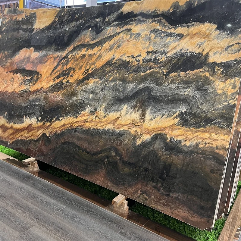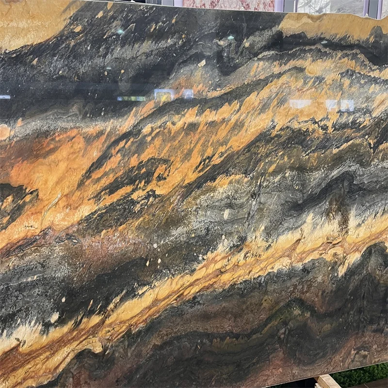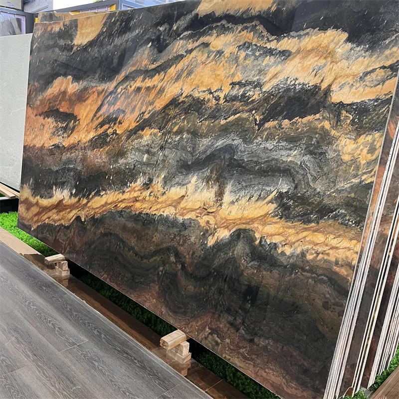 Naturalis Modernus Designus Luxuriosus Phoenix Aureus Quartzitus Tabulae Pro Parietis Fondo Designando