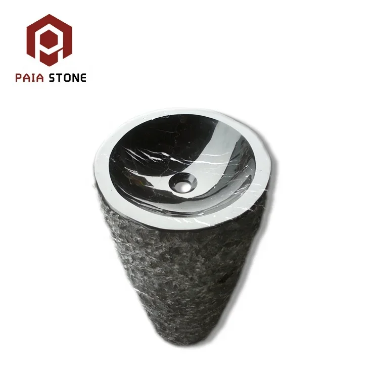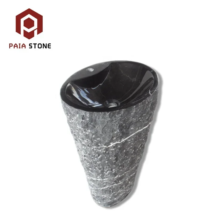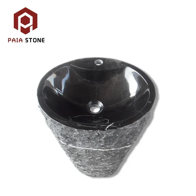 Bak Mandi Marmer Nero Marquina Hitam dari Batu Semula Jadi dengan Saiz Rekaan Khas, Sink Bak Mandi Bertiang dari Marmer Batu Dalaman