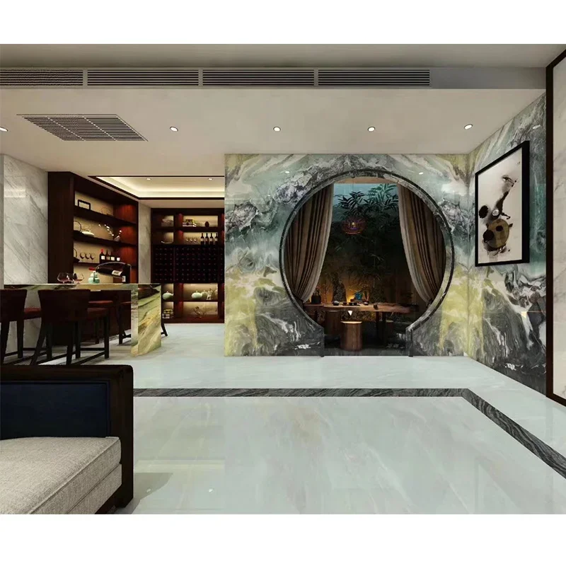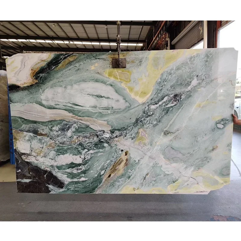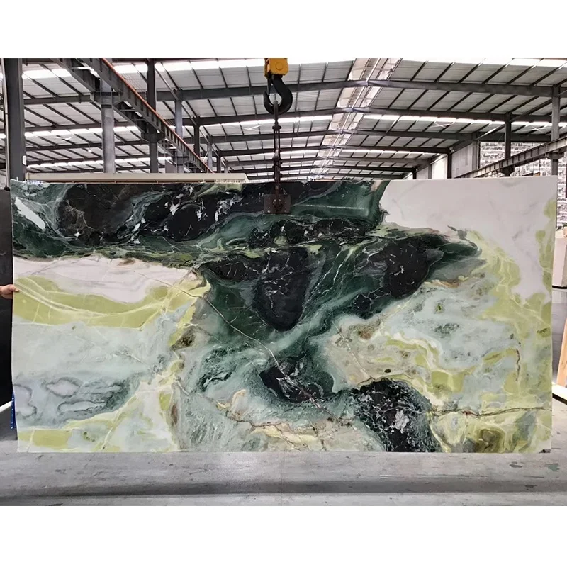 Kepingan Marmar Wizard of Oz Mewah, Jubin Marmar Hijau Burung Merak untuk Dinding Latar Belakang