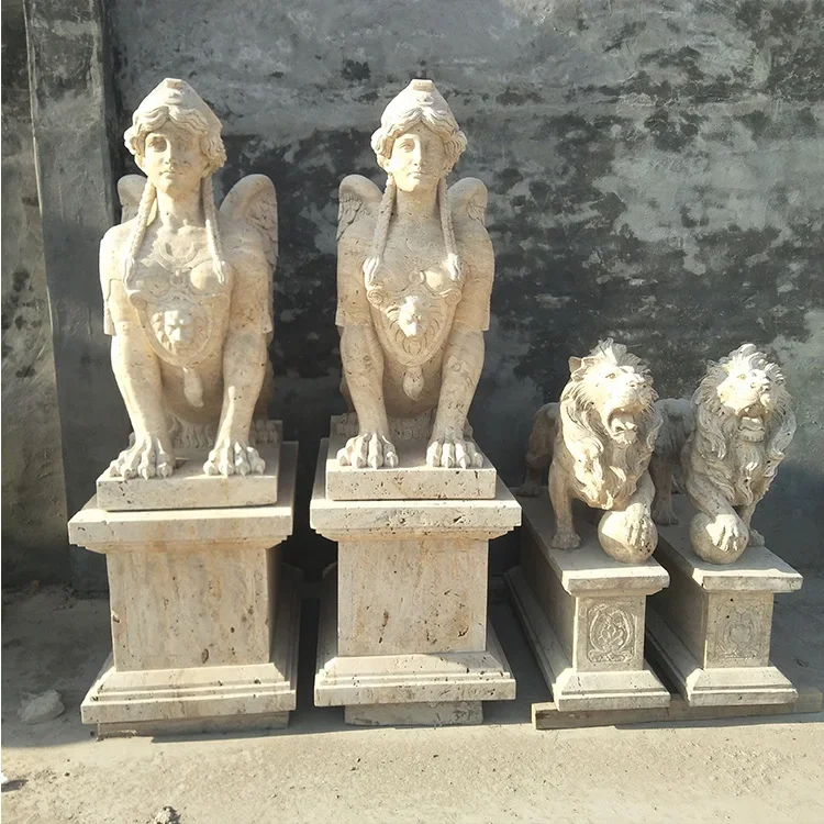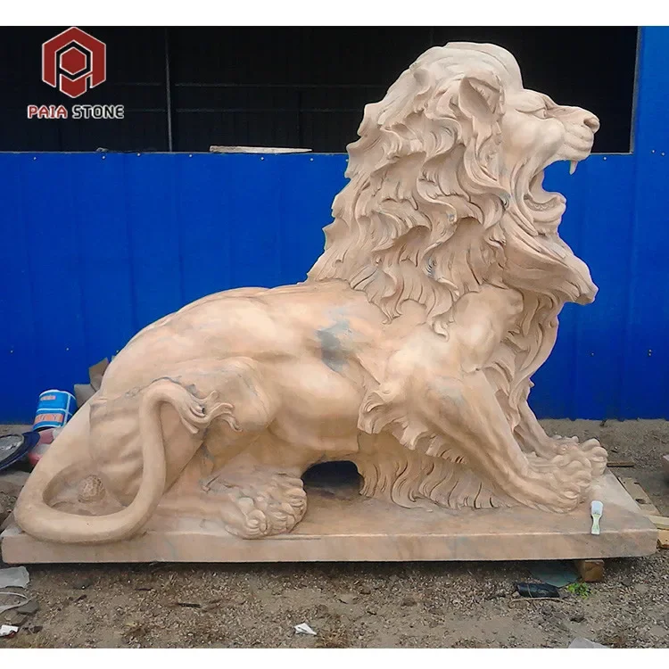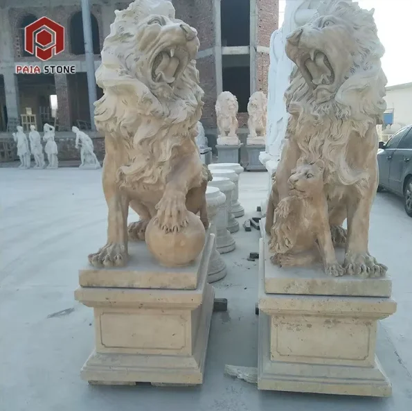 PAIA STONE Reka Bentuk Timur Moden Patung Singa Hiasan Luar Tahan Lama Saiz Tempahan Granit Patung Rumah Kuil Tangan 1 Tahun