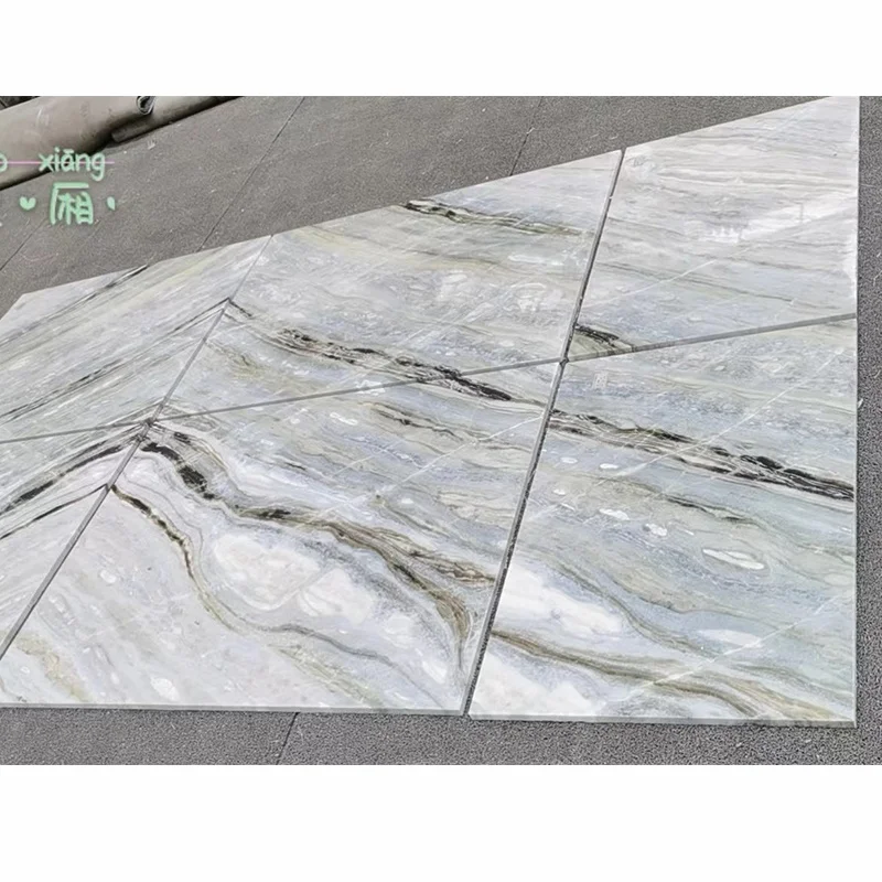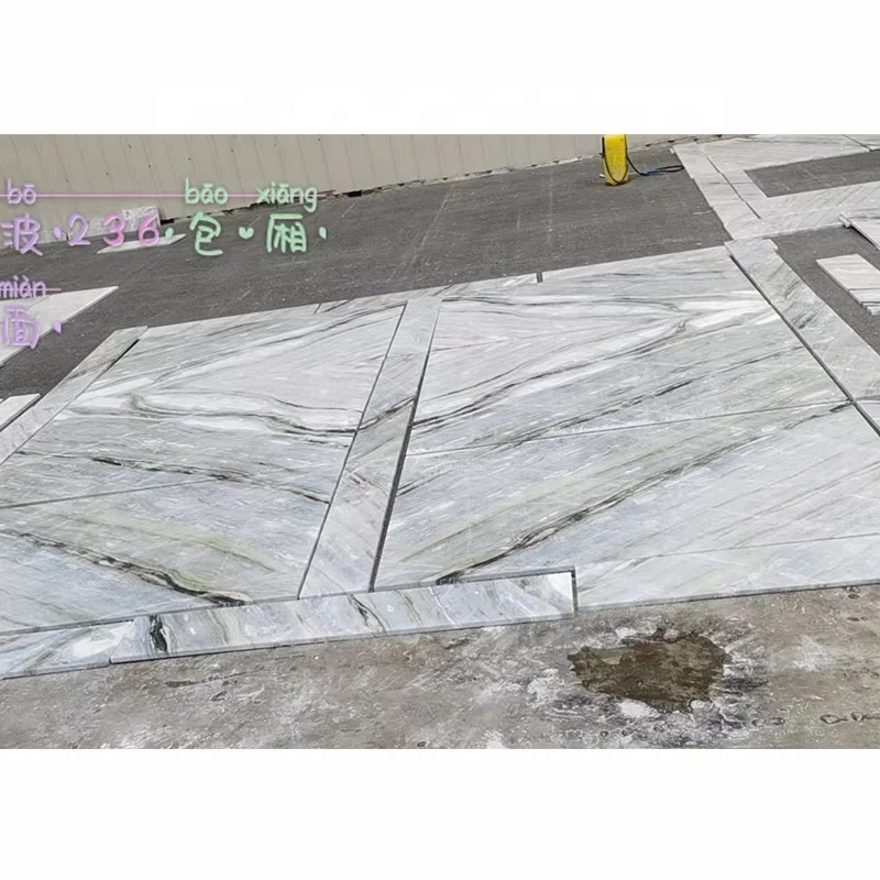 Naturalny kamień – układ książkowy, srebrnoszary, jasnobrazylijskoniebieski płytowy marmur Dunaj do dekoracji