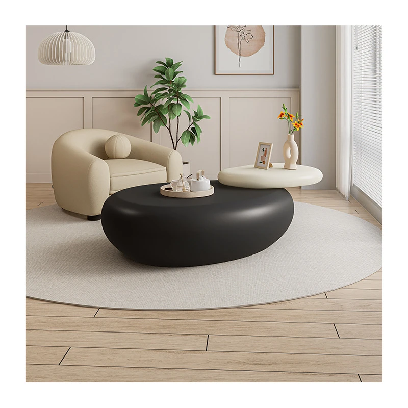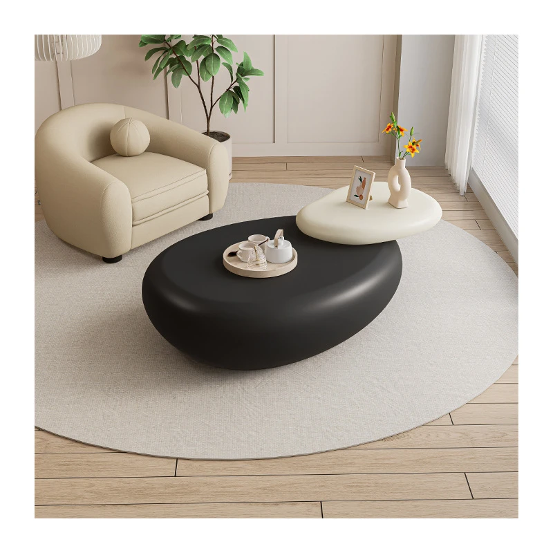 2024 Premium Sensuous Art Custom Cream Pebble Rotating Coffee Table Modern Design Living Room Wind Removable 1-Year Warranty
