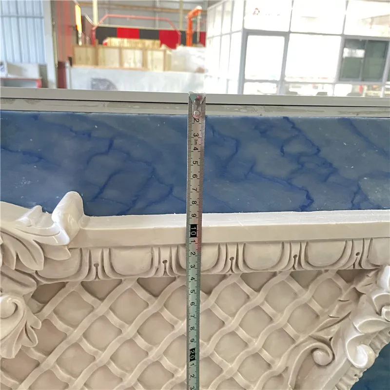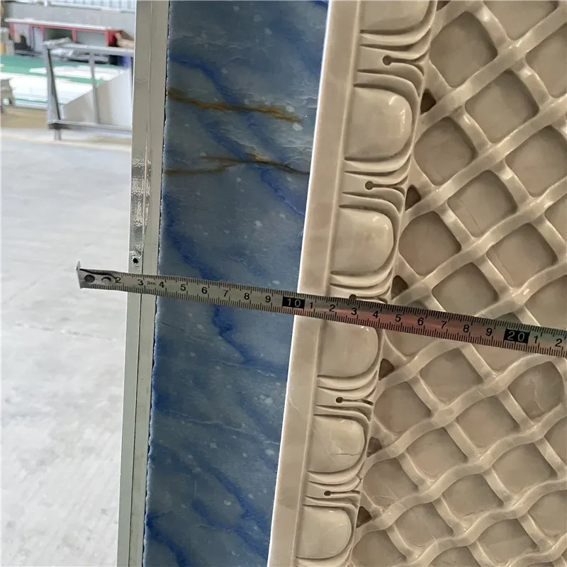 B: by composite thickness. The composite material can be Pocerlain Tiles, Granite, Aluminium, etc. Top with granite or marble for carving. But usually composite is only used for marble products or some other extoic stone products to save the stone cost and to make the marble more stronger. 100% of the marble need to be composite. It will be also good for installation, much more safe and easier for installation.