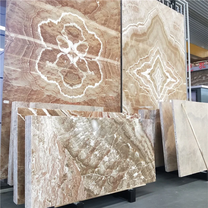 A2:onyx has always been associated with decoration,Onyx is mainly used as a material for interior design.A composite material composed of onyx and glass or aluminum honeycomb is used as a background wall.widely used in the advanced decoration of hotels, villas, suites and other places,suitable for home decoration TV, sofa background wall decoration, floor decoration, villa interior wall decoration.