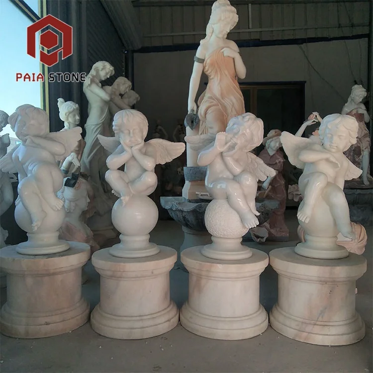 product beautiful angel marble statue custom size western style stone sculpture for garden modern design with eastern influence-0