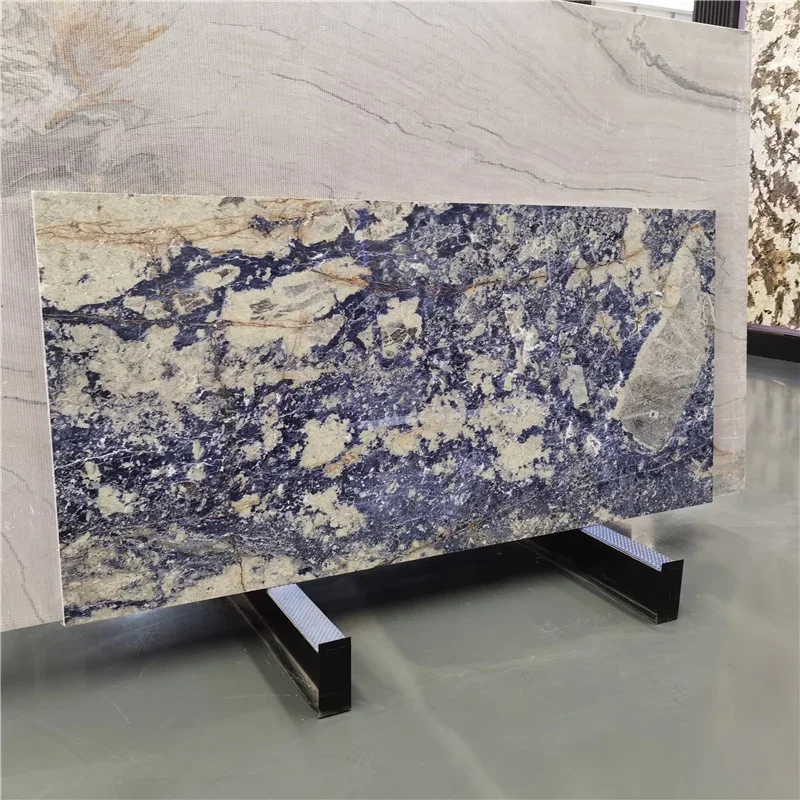 Brazil Bolivian Blue Stone Slab for Five- Star Hotel Wall Reception Top Decoration Bolivia Sodalite Blue Marble Slabs Thin Cut