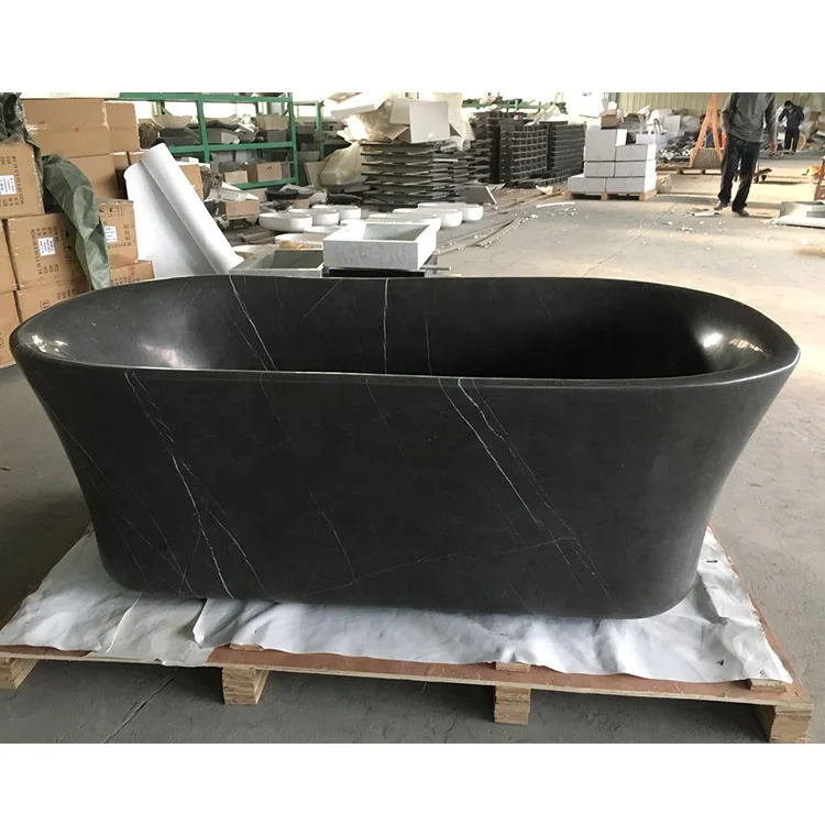 China Manufacturer Direct Traditional Design Black Marble Freestanding Bathtub Natural Stone for Soaking in Villas Bathroom
