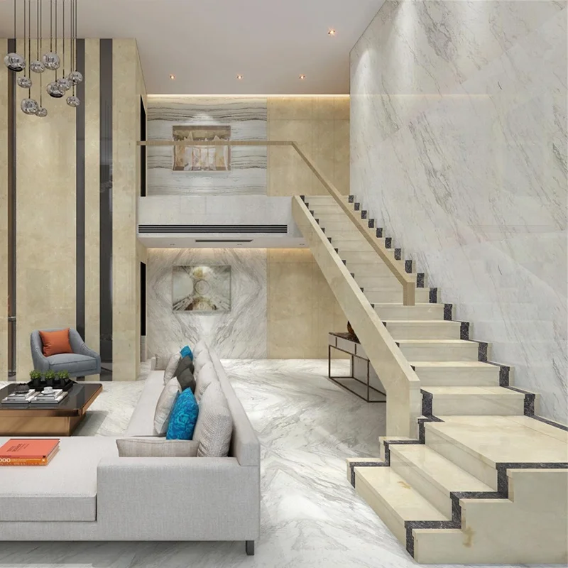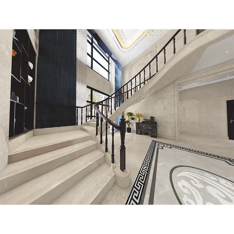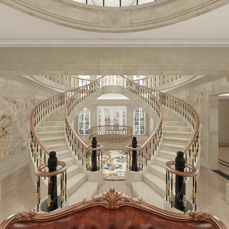 China Manufacturer Modern Design Stone Stairs Beige Marble Curved Spiral Staircase