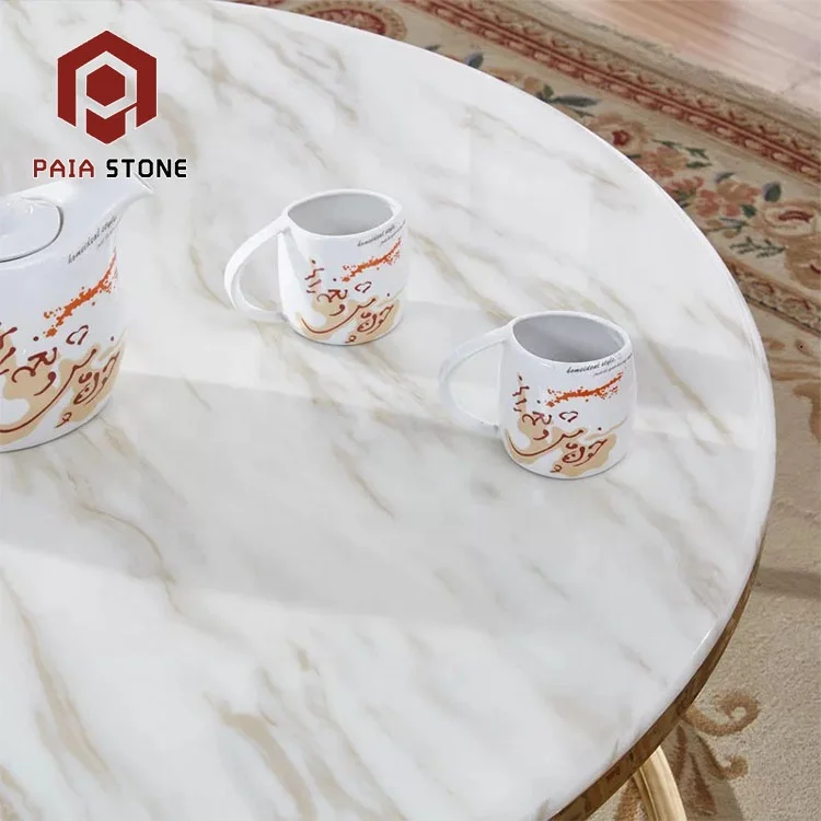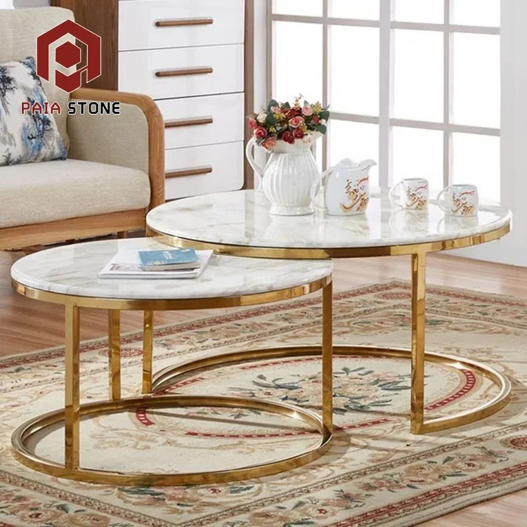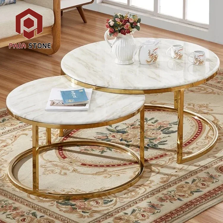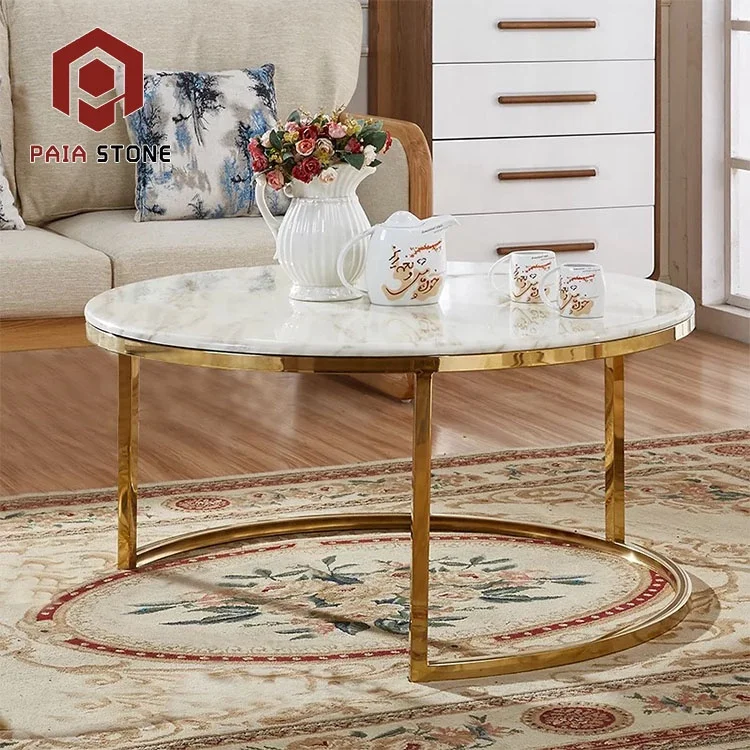 Chinese Classic Round Onyx Marble Coffee Table with Stainless Steel