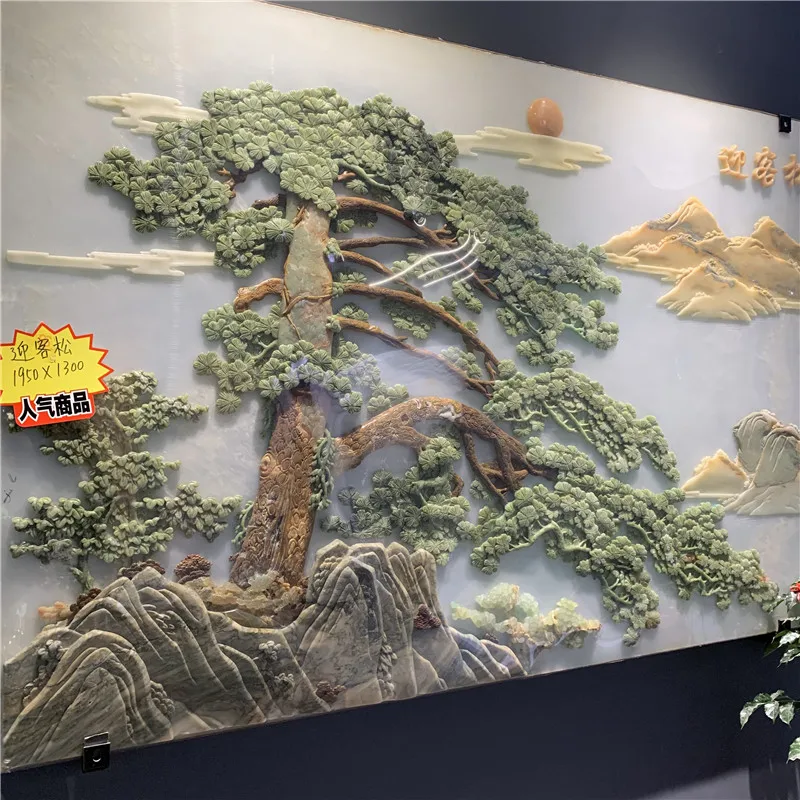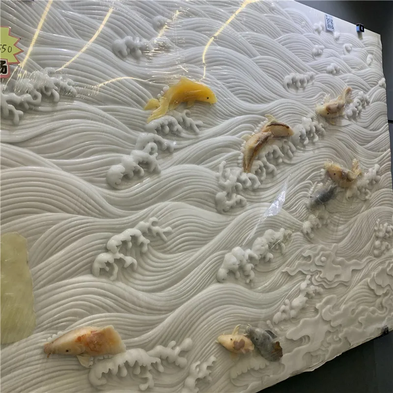 Customized High Quality Natural Onyx Carved 3D Wall Relief Sculpture For Background Wall