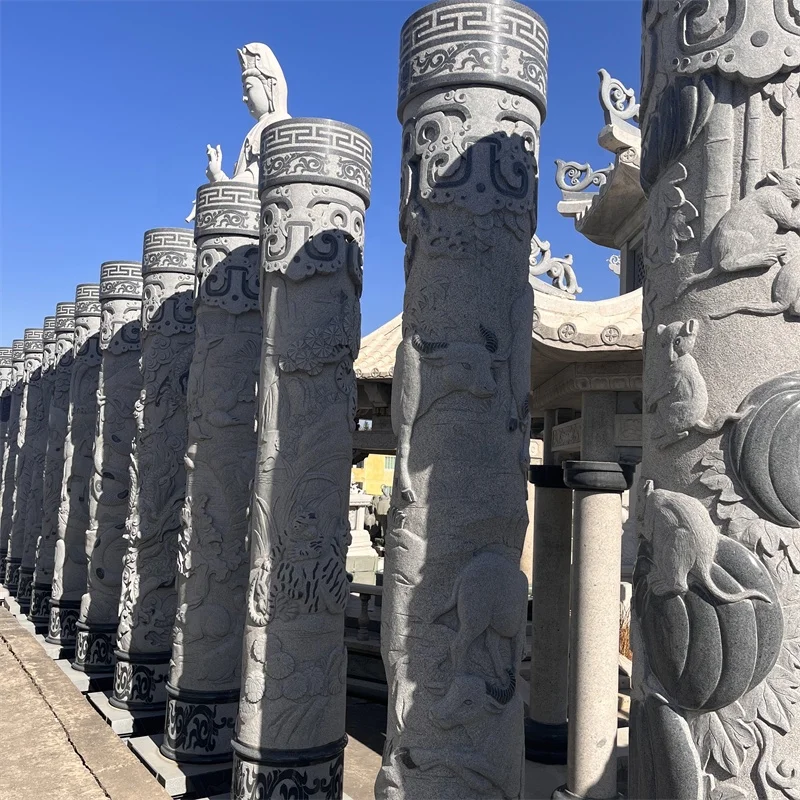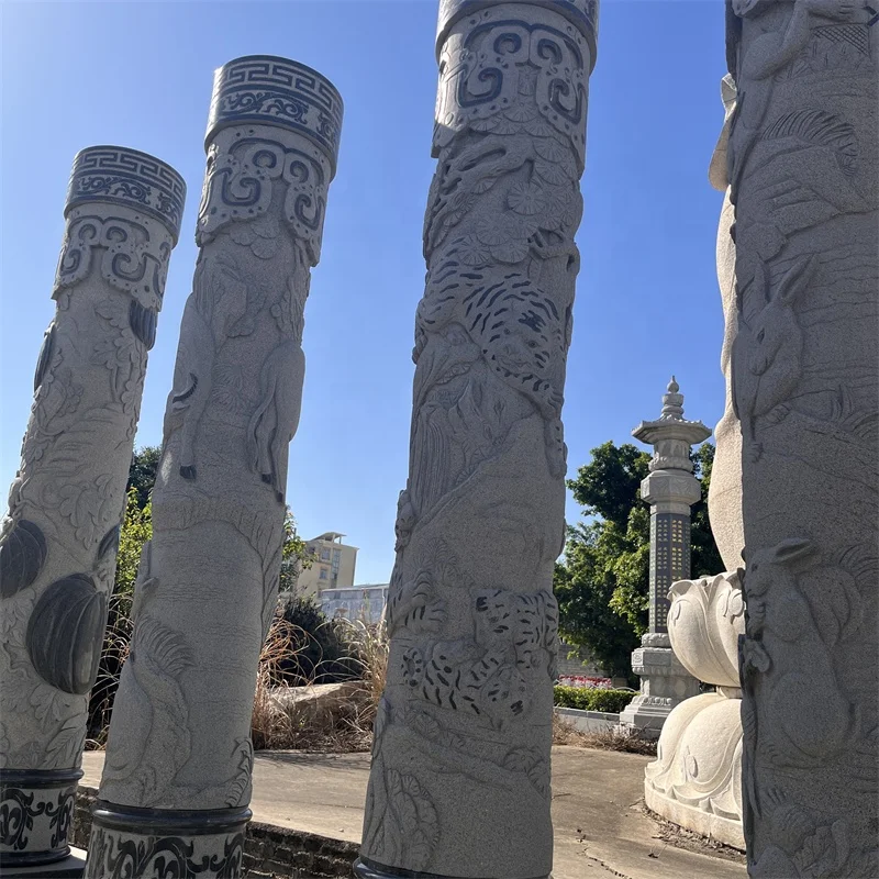 Customized Project Hand Carved Animal Carving Statue Pillar Column Sculptured Roman Columns