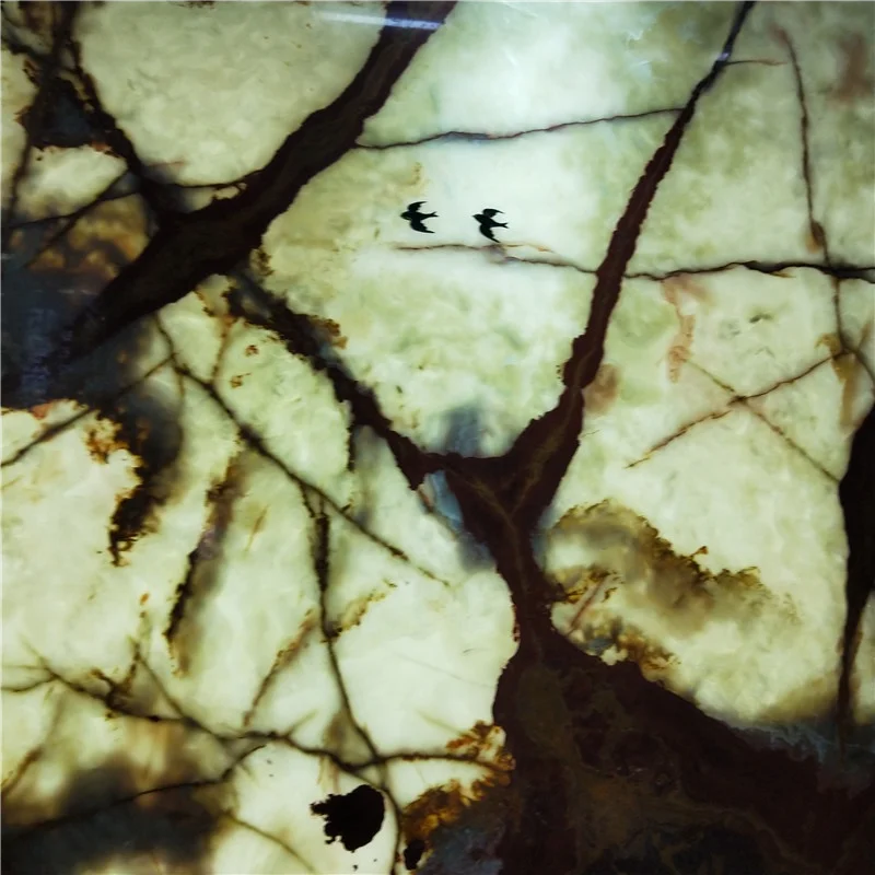 Dark Green Onyx Stone Jade Transparent Lighting Indoor Wall Green Jasper Stone