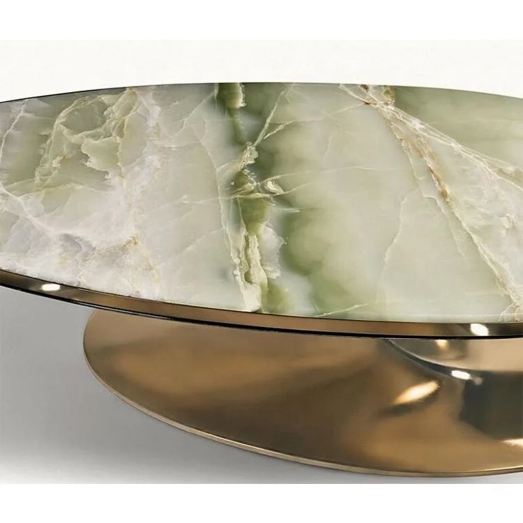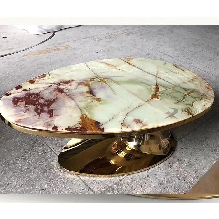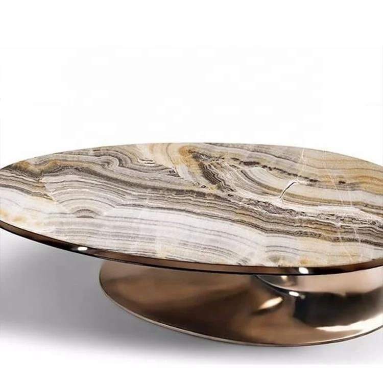 Elegant stainless steel marble top coffee table / center table design