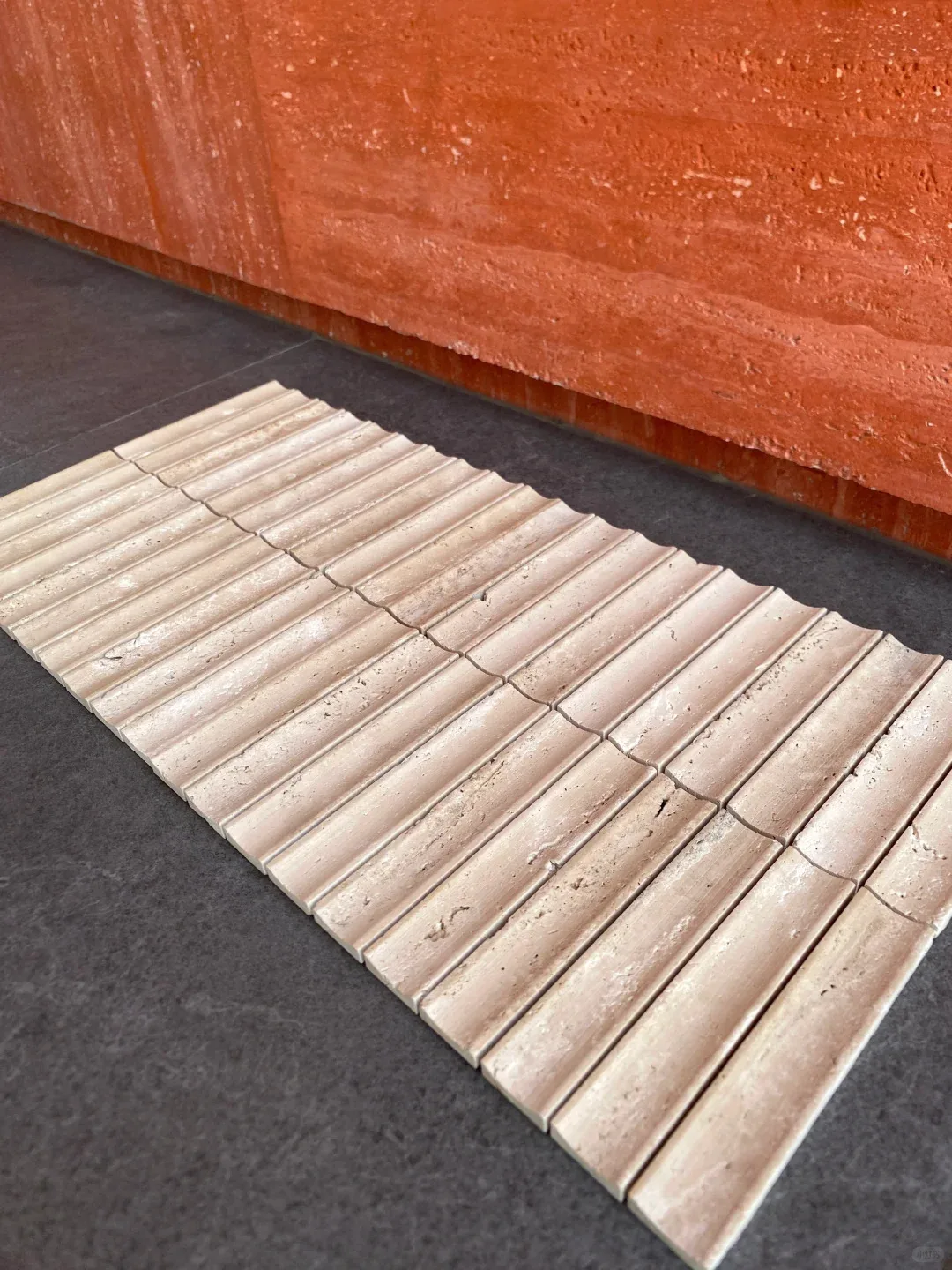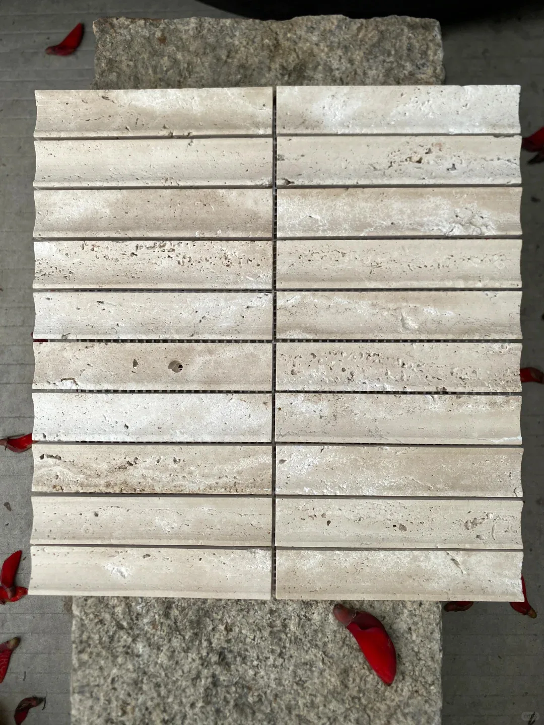 Introducing, the exquisite Paia Factory Wholesale High-quality Natural Travertine Stone Mosaic Tile Concave-convex Marble Mosaic Lines. This stunning tile is perfect for adding a touch of elegance and sophistication to any indoor wall design.