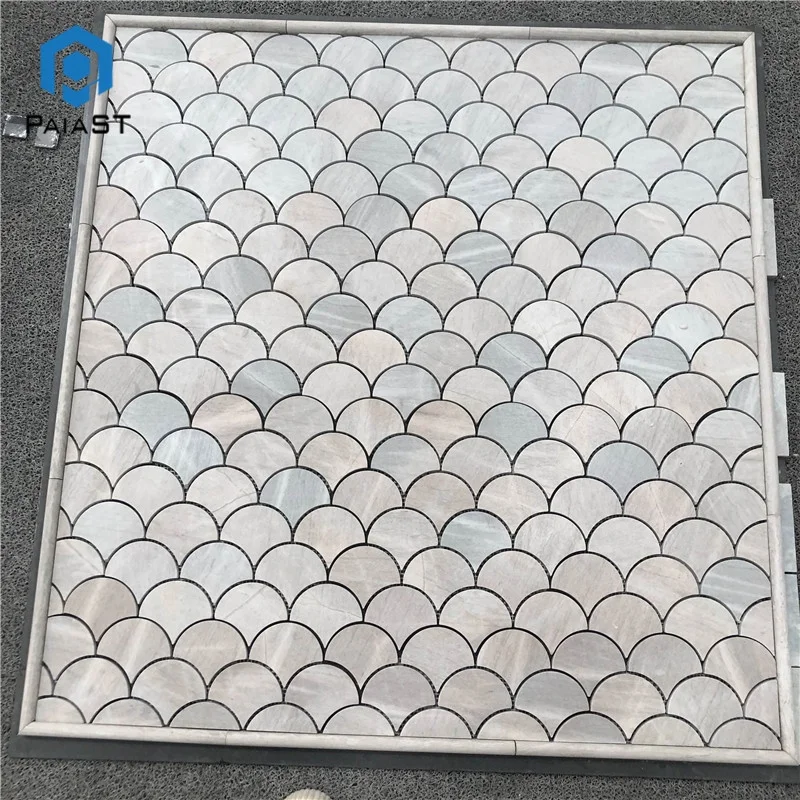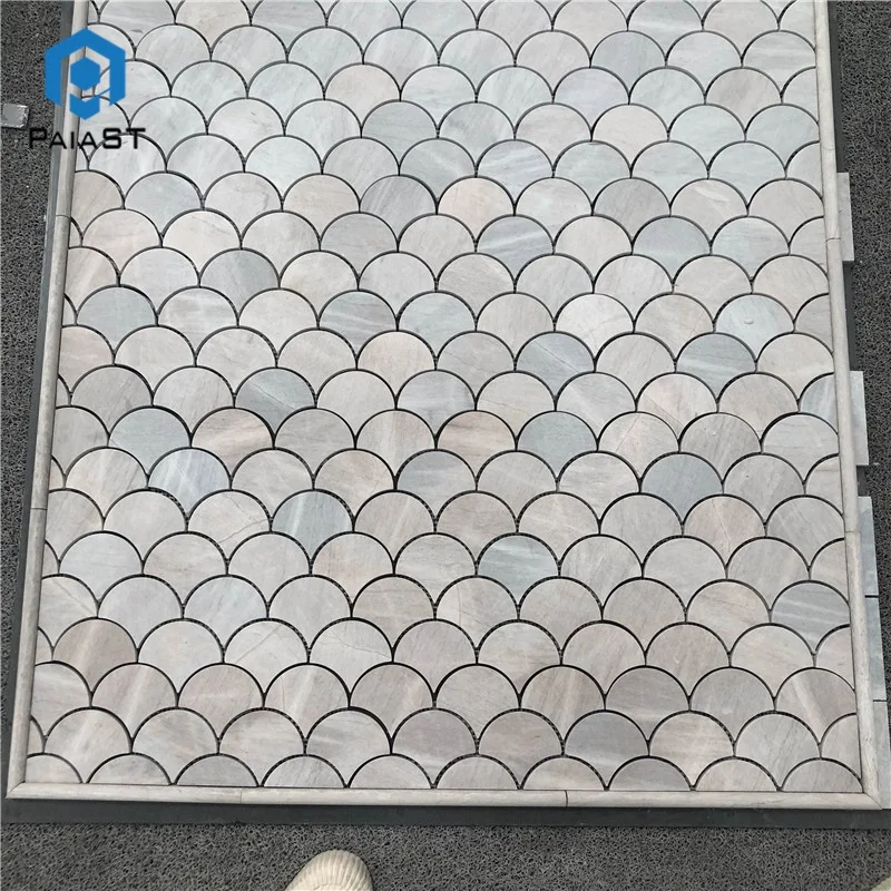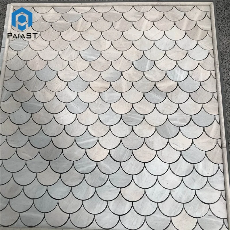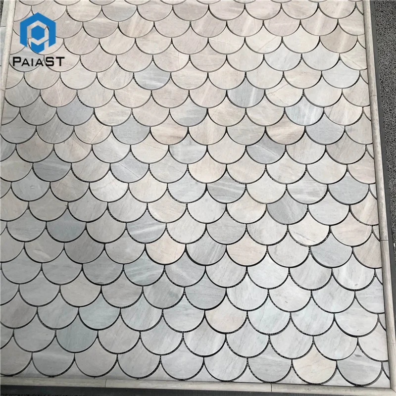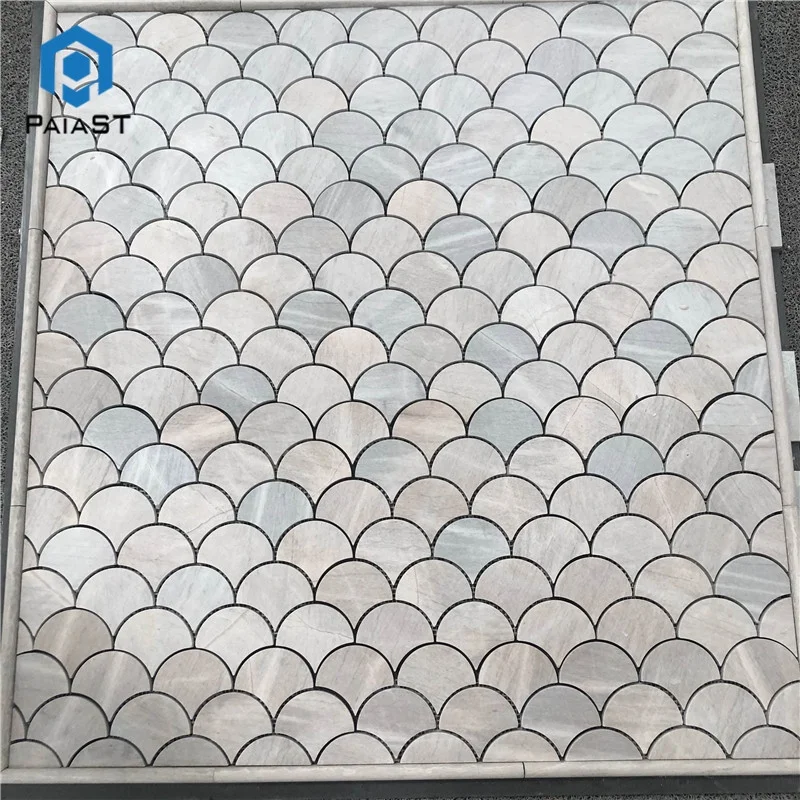 Fish scale grey marble mosaic tiles shower room wall floor design,fan shaped mosaic tile