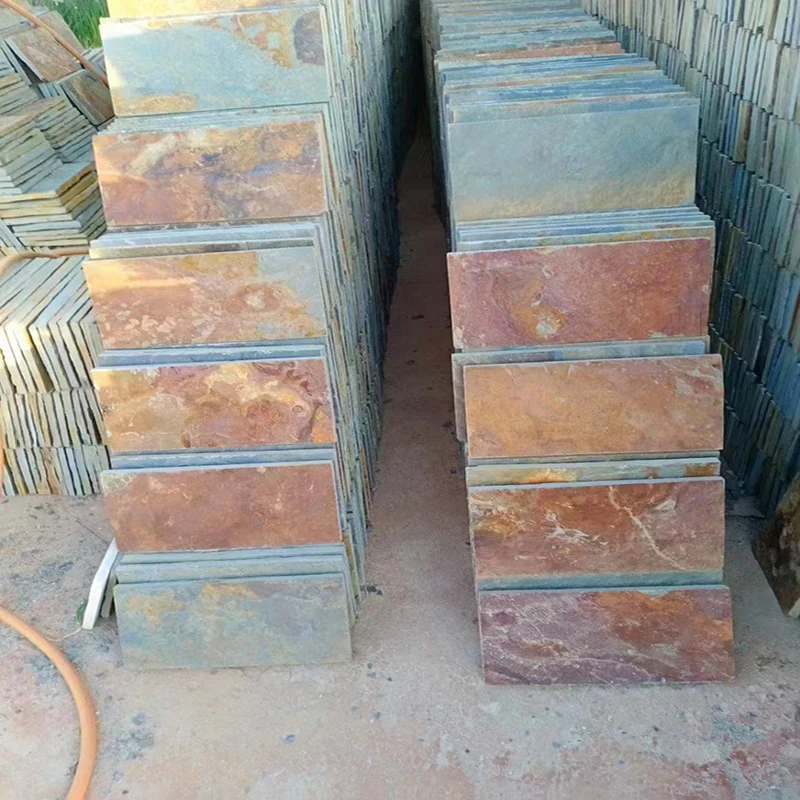 Garden Exterior Wall Yellow Wood Grain Culture Stone Rust SLATE Stone Ground Pavement
