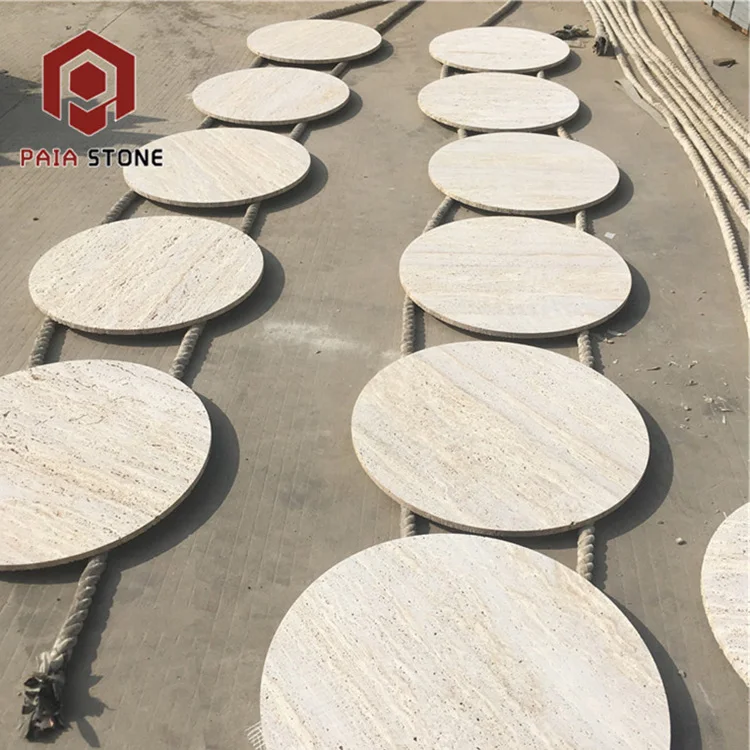 product high quality factory supply round white travertine marble slab table top-2