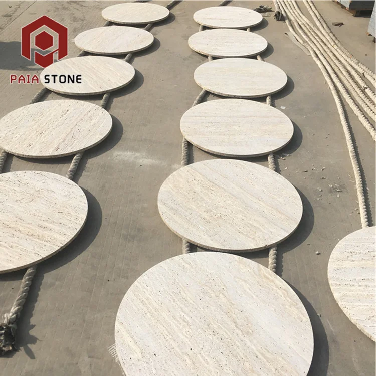 product high quality factory supply round white travertine marble slab table top-1