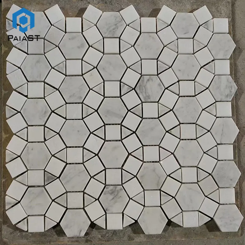 Modern Style Kitchen Backsplash Waterjet Carrara White Marble Mosaic Wall Tiles Stone Mosaic Bathroom Decor with Parquet Design