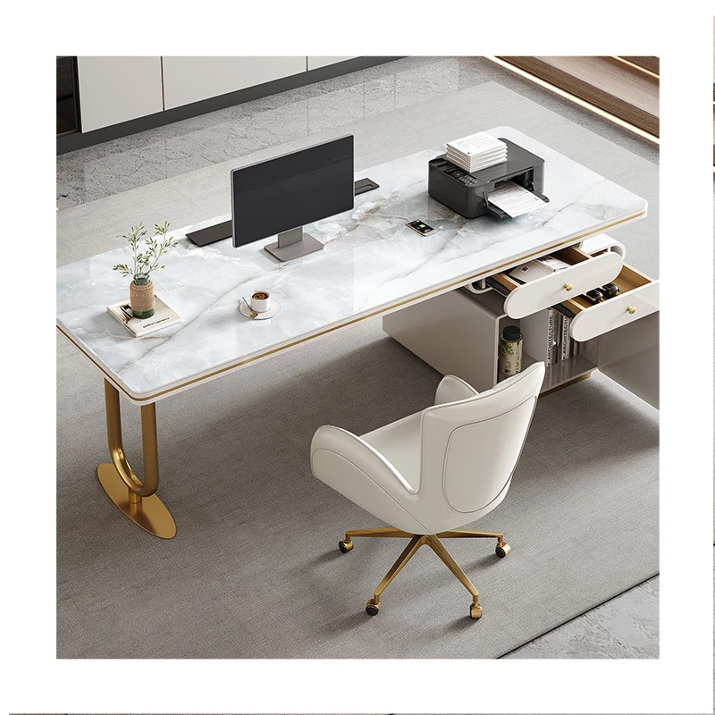Light Luxury White Modern Simple Round Rock Board Desk 1-Year Warranty Small Home Computer Study Desk