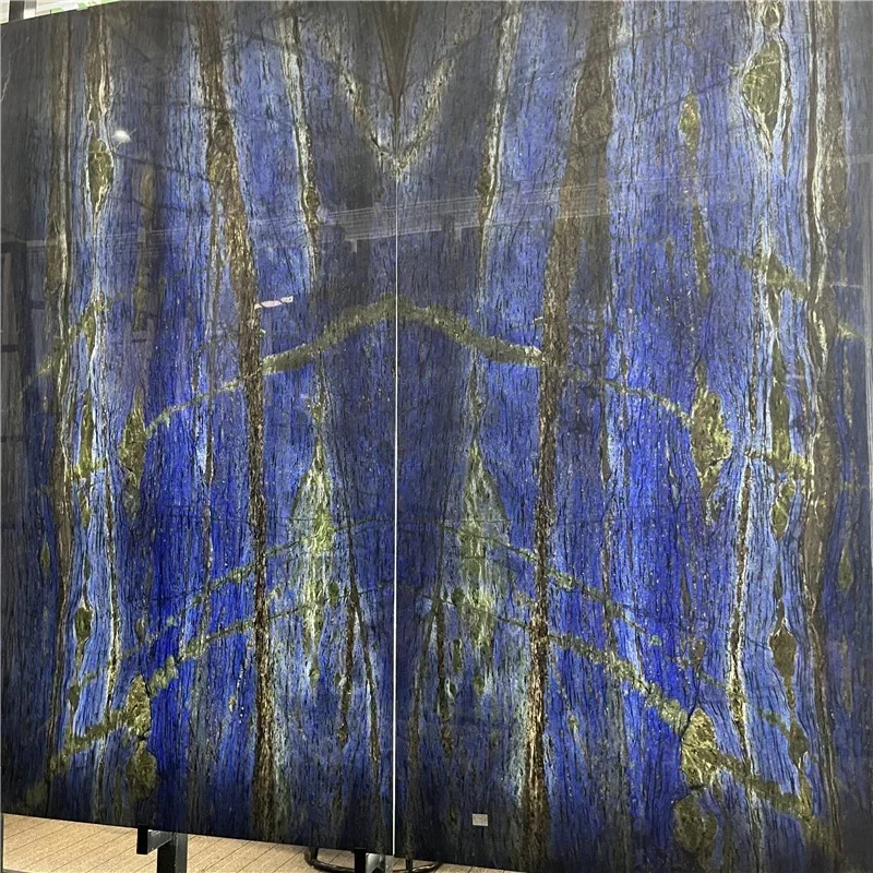 Luxury Azul Bahia Quartzite Backlit Bookmatched Slab For Wall Natural Azul Bahia Granite For Villa Decor