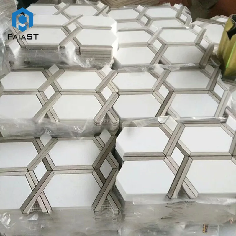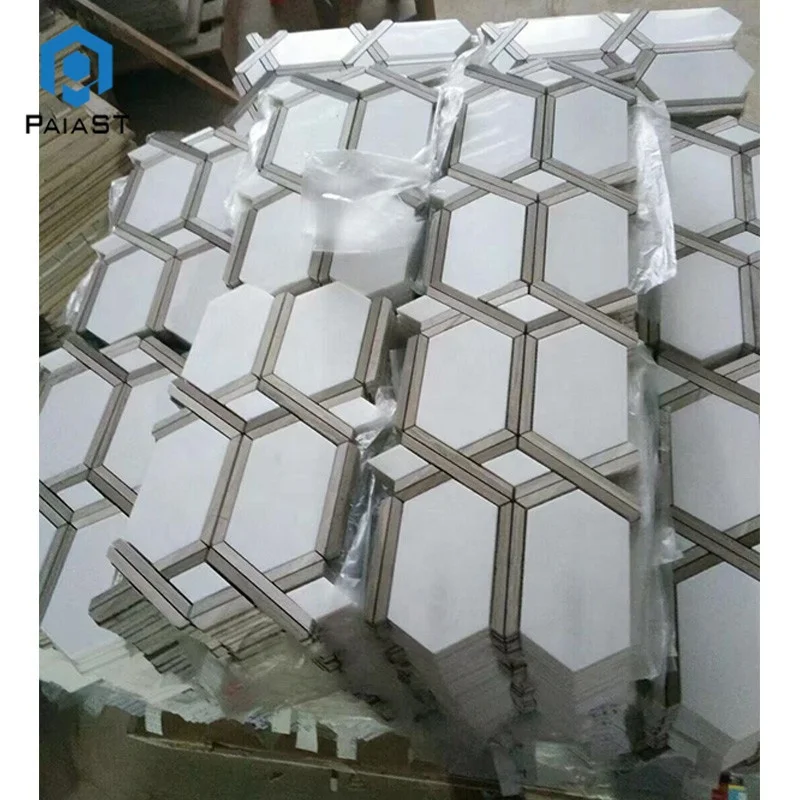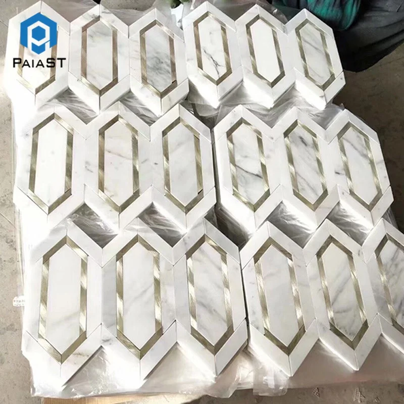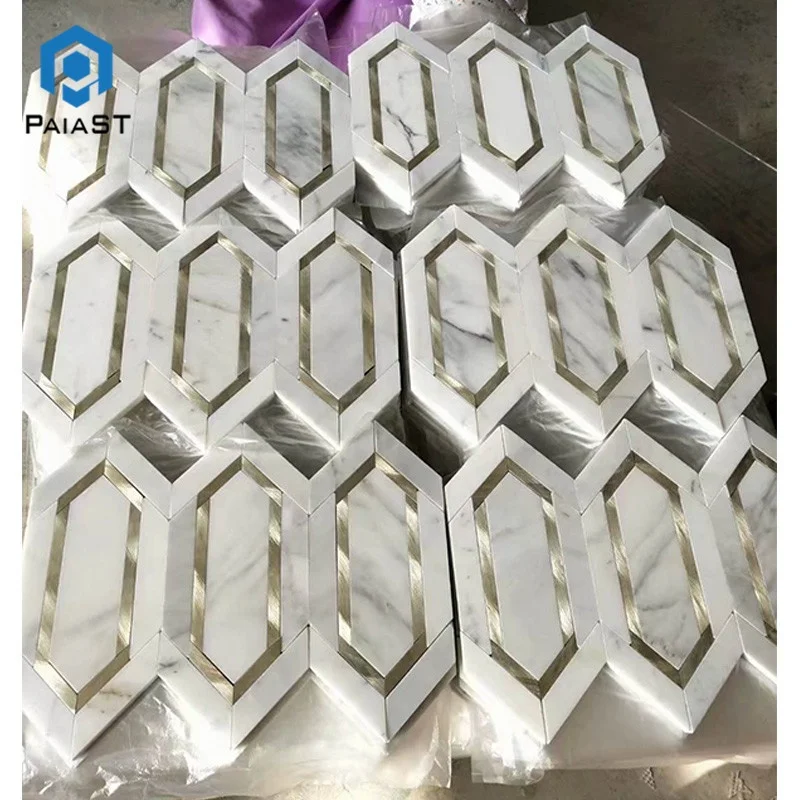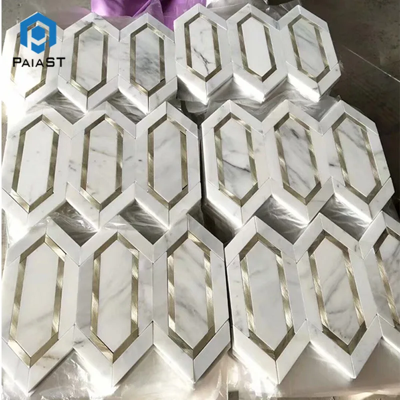 product luxury new design white marble mixed brass hexagon mosaic marble and metal mosaic tiles for wall-1 product luxury new design white marble mixed brass hexagon mosaic marble and metal mosaic tiles for wall-2