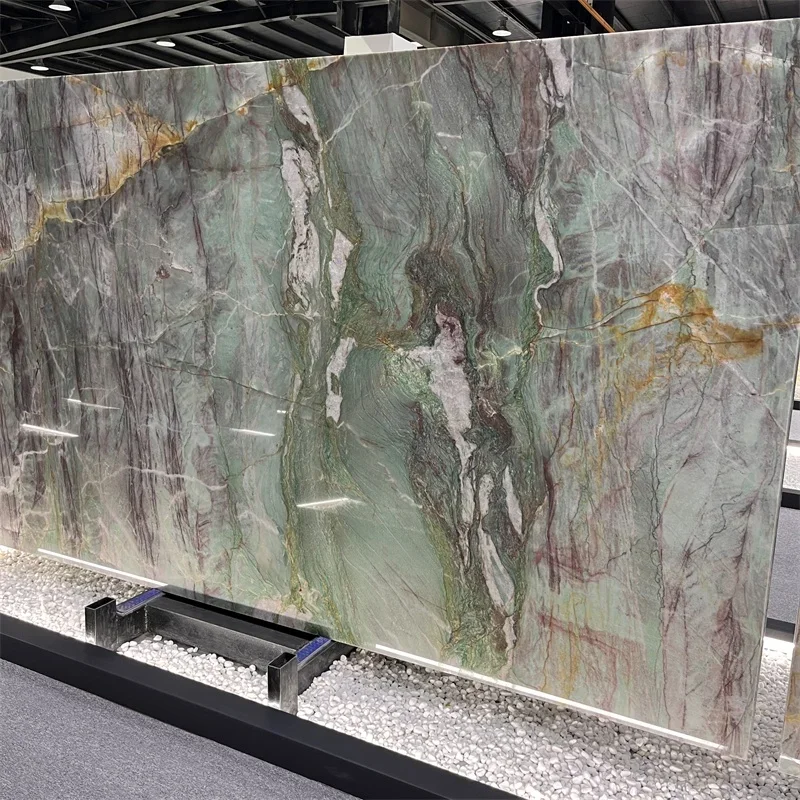 product luxury royal green quartzite slab high quality exotic stone countertop interior wall decor customized sizes similar marble tile-9
