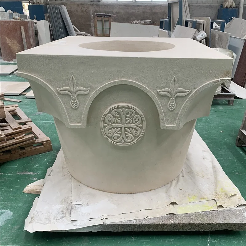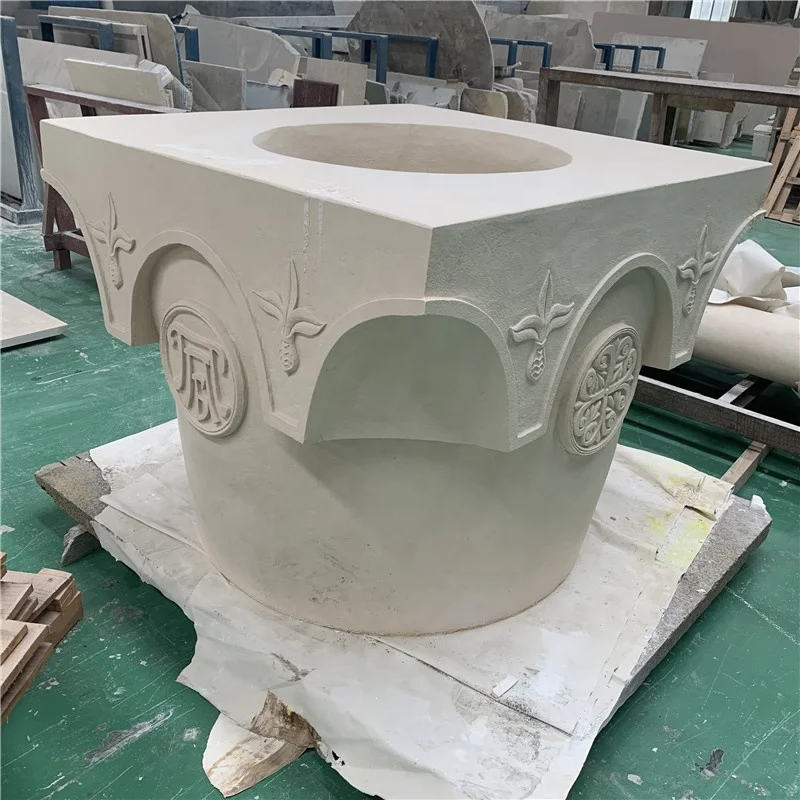 Chinese arc shape beige marble cladding column decoration for hotel indoor design