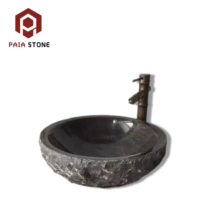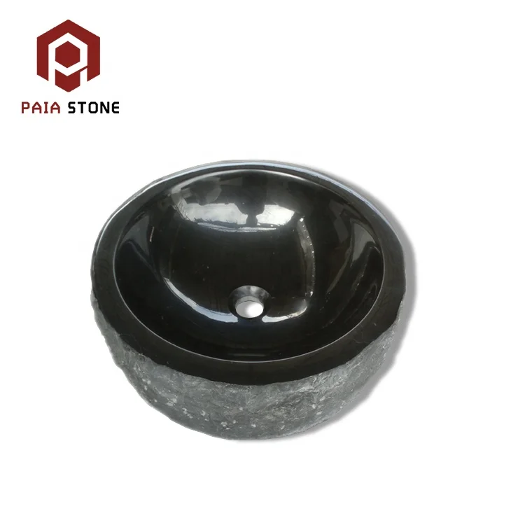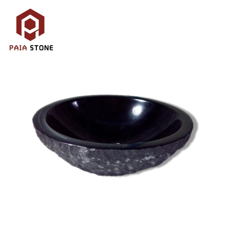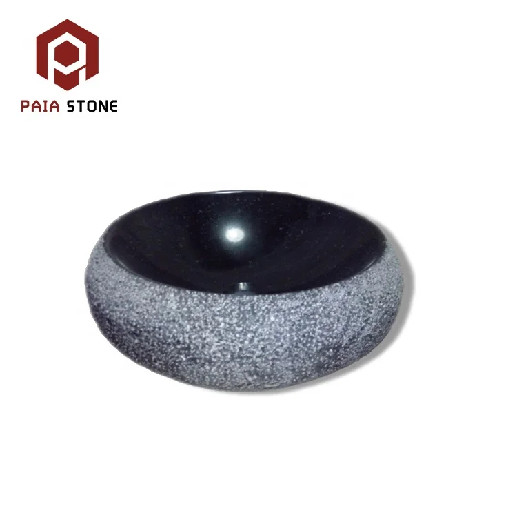Hot saling bathroom washbasin natural stone black granite vessel sink